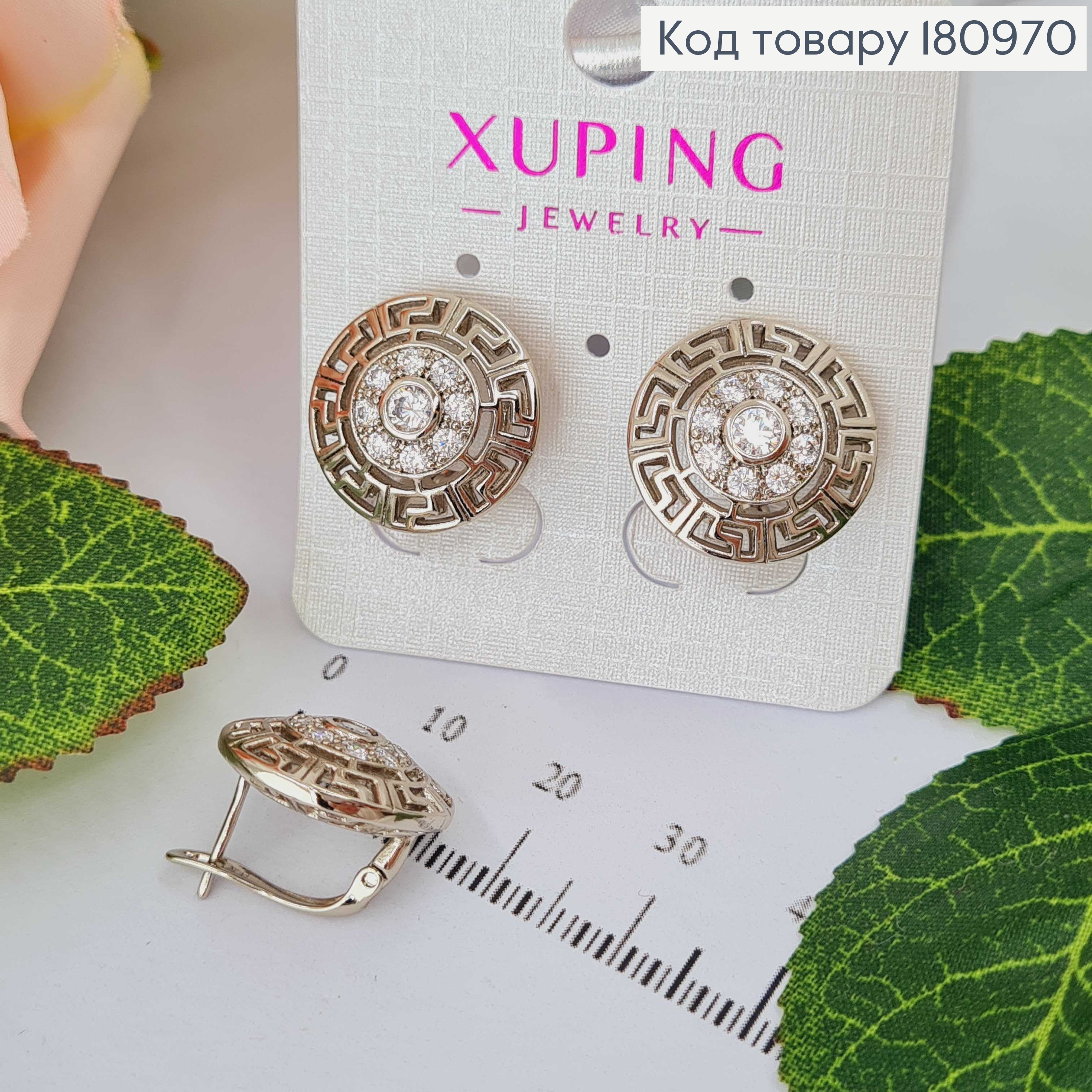 Сережки родовані "Блиск" прикрашені Блискучими камінцями, 1,9см, англійська застібка, Xuping