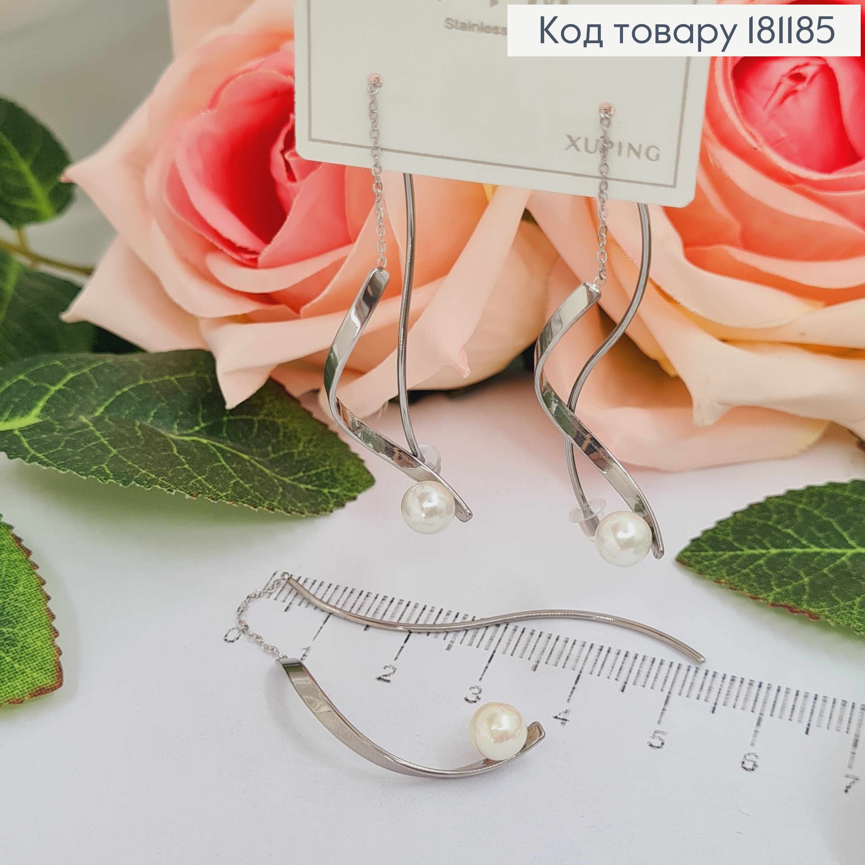Сережки родовані, "Спіралі" з перлинкою, 5см. Xuping