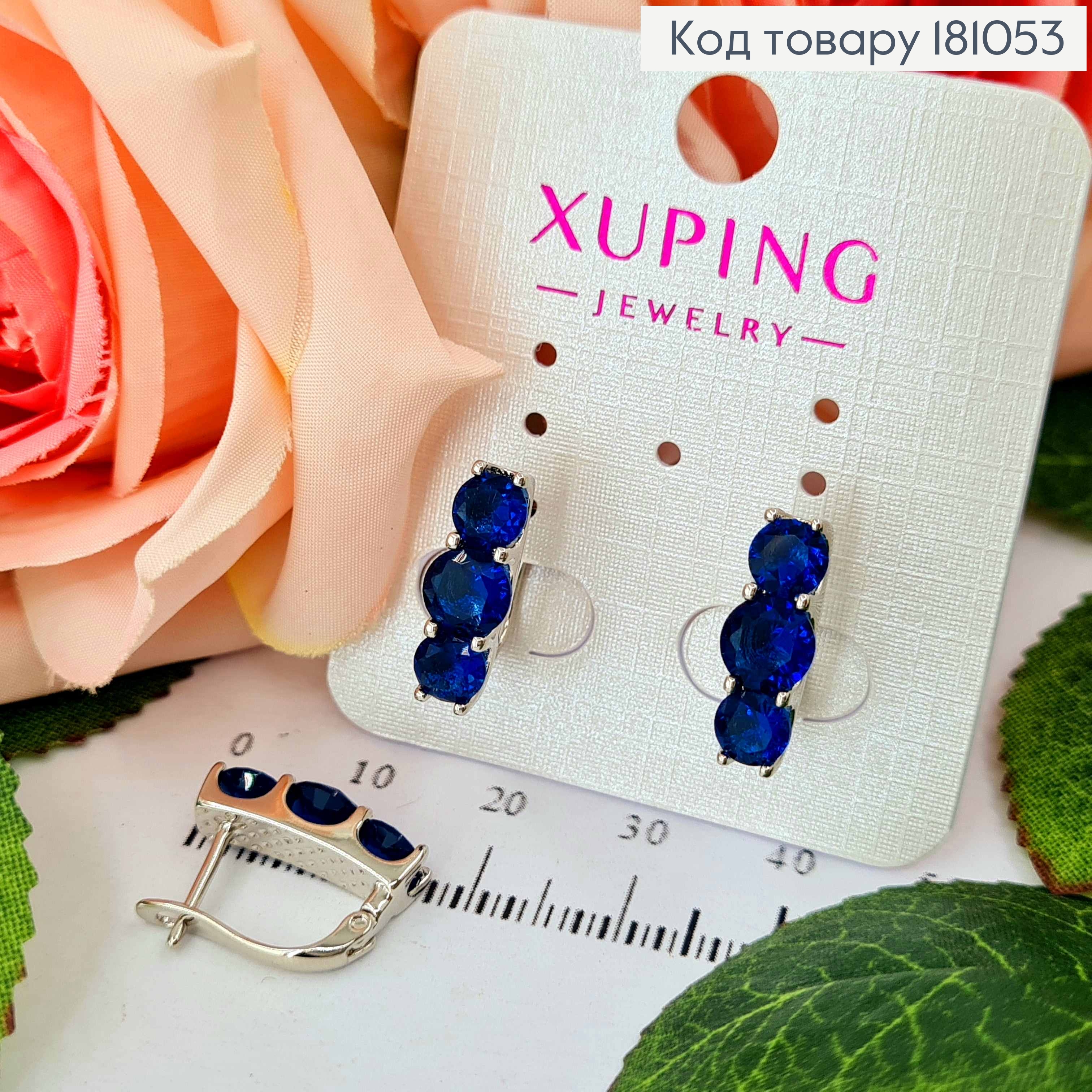 Сережки родовані "Тріо" , з синіми камінцями, 1,5см, англ. заст. Xuping
