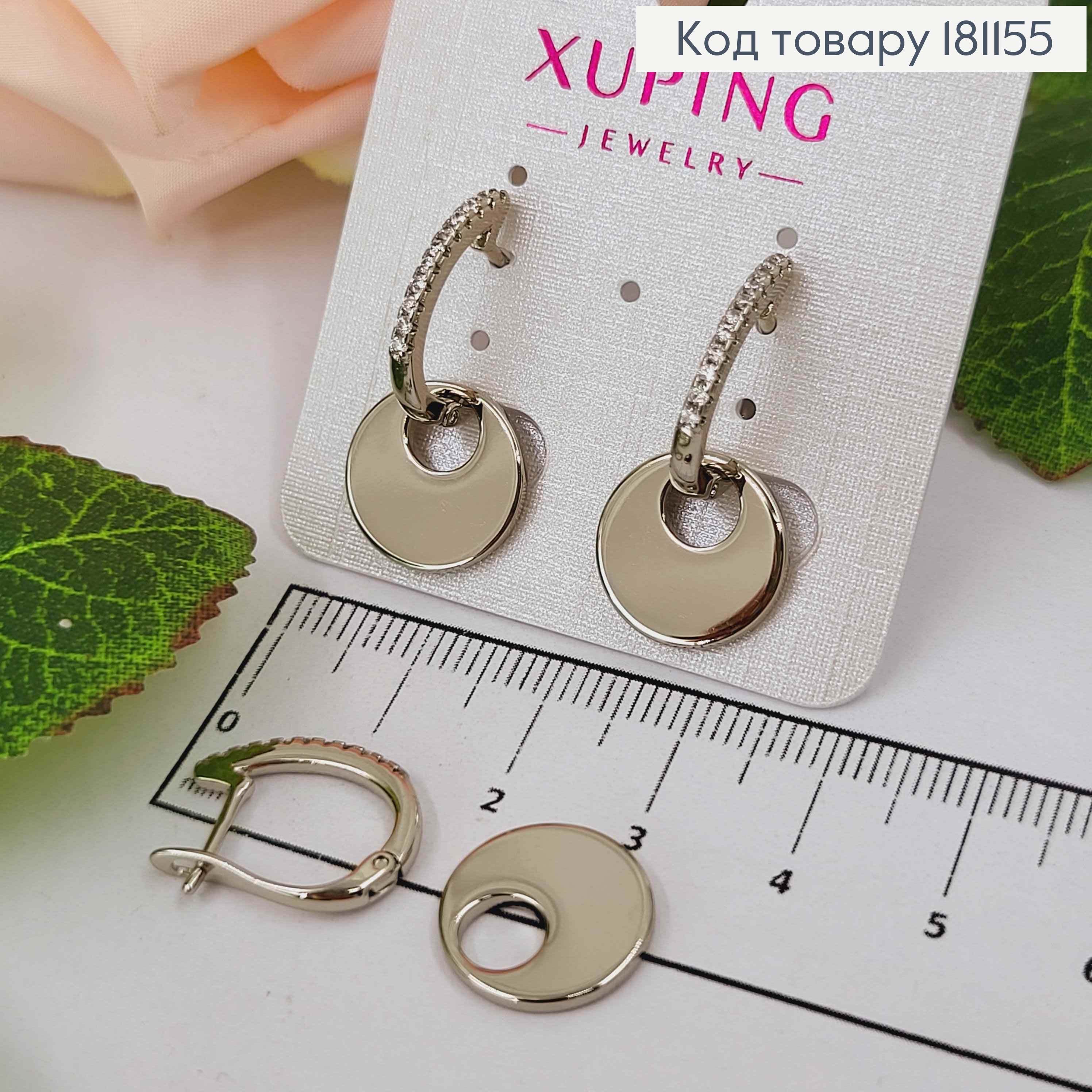 Сережки родовані, в камінцях, з підвісками плоскими монетками, англ. застібка. Xuping
