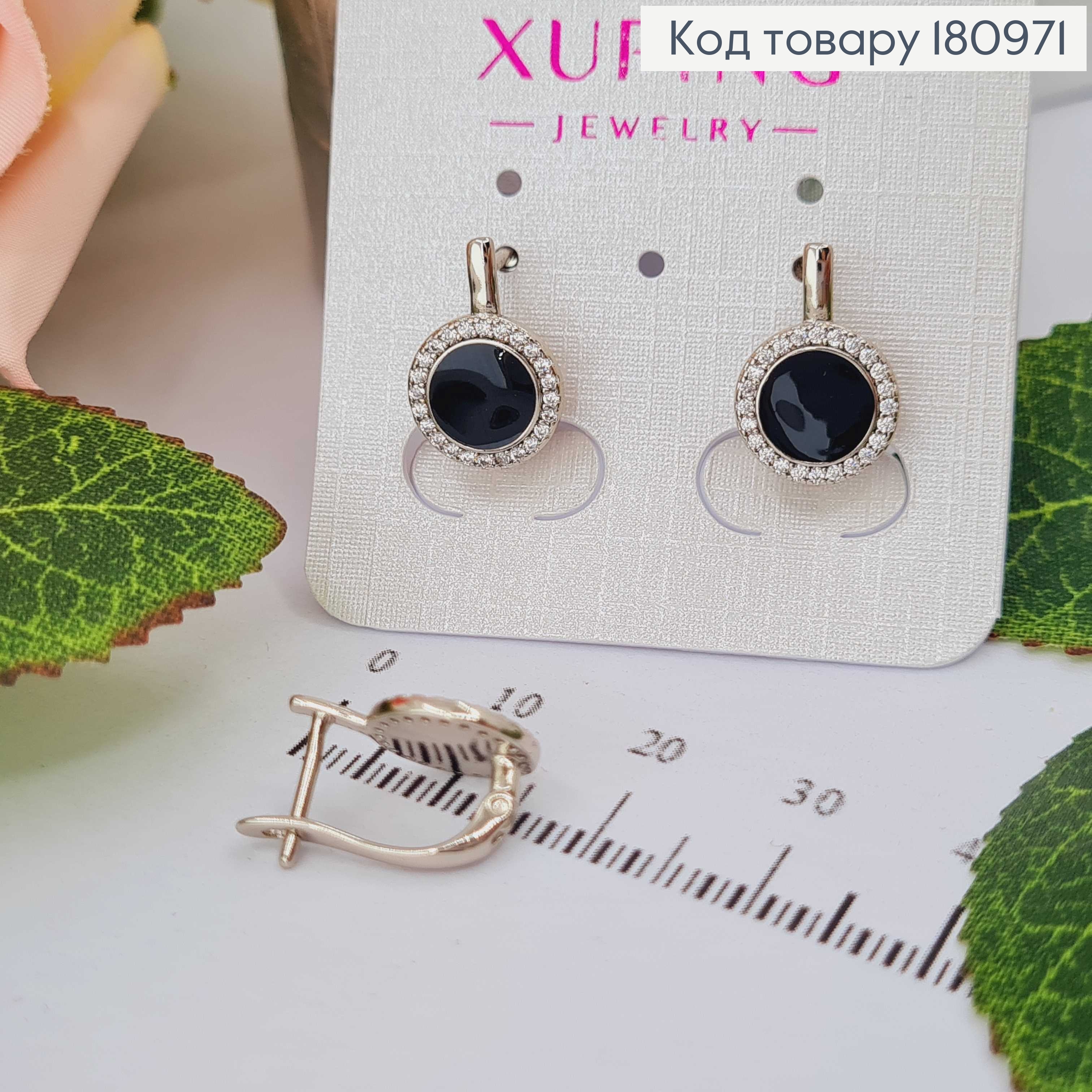 Сережки родовані з чорною вставочкою, та камінцями англ. заст. Xuping
