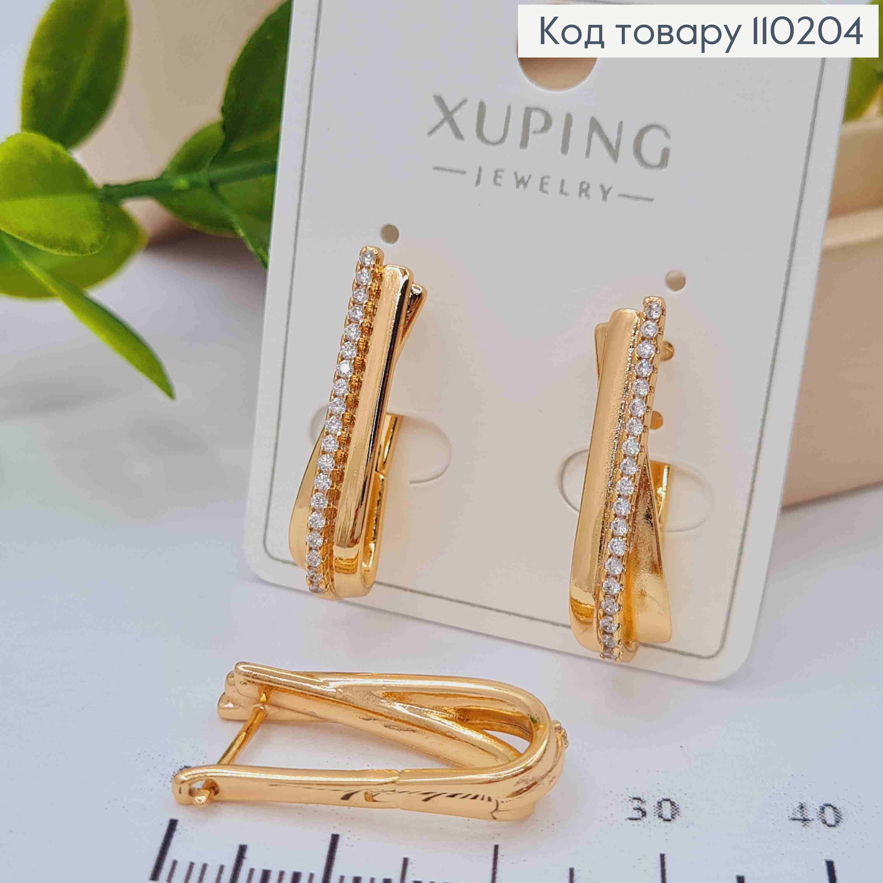 Сережки "Х" прикрашені Блискучими камінцями,  довжина 1,6см, англійська застібка, Xuping 18К 110206 фото