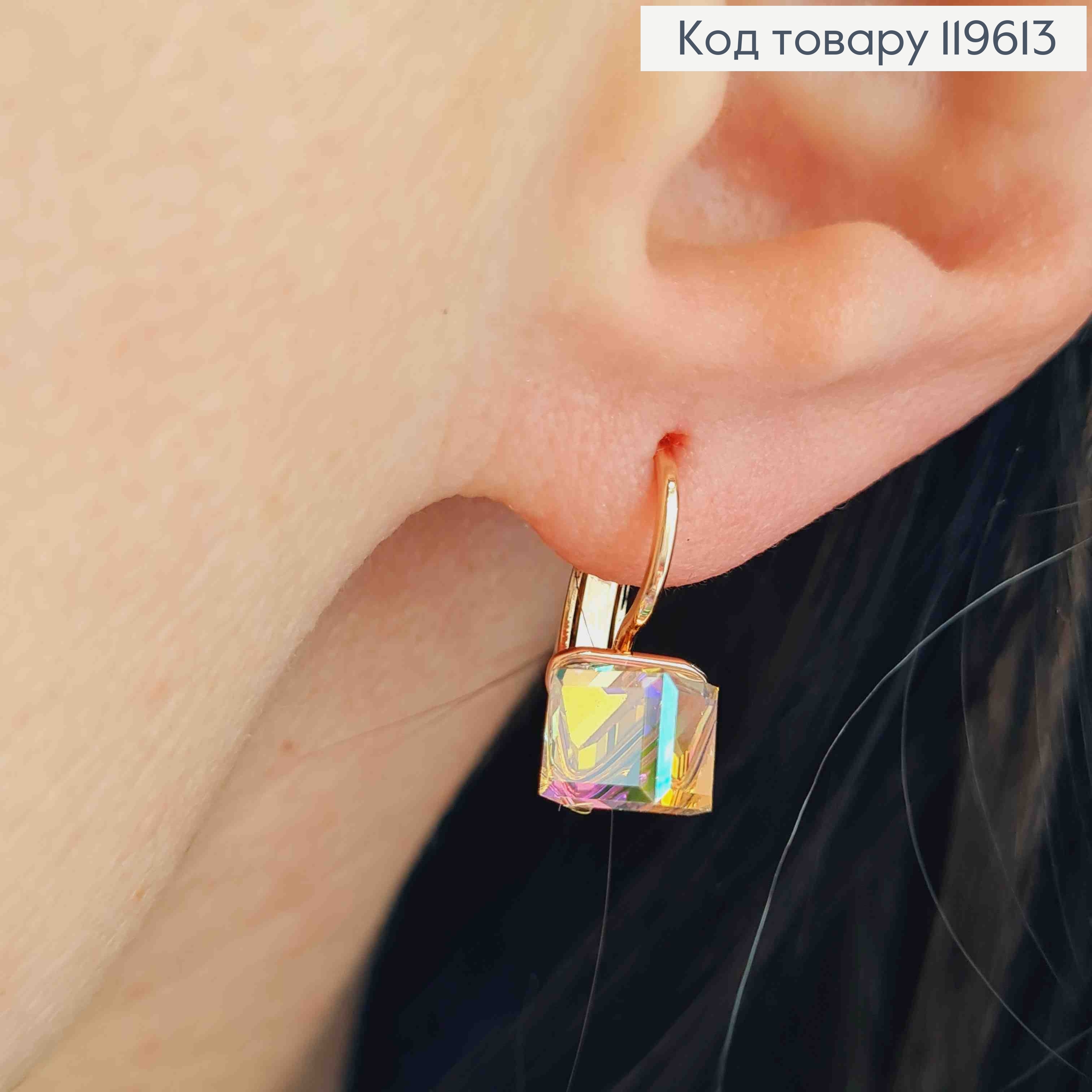Сережки з Квадратним Блискучим каменем Сваровські Хамелеон, 1,5см, застібка левербек, Xuping 18К