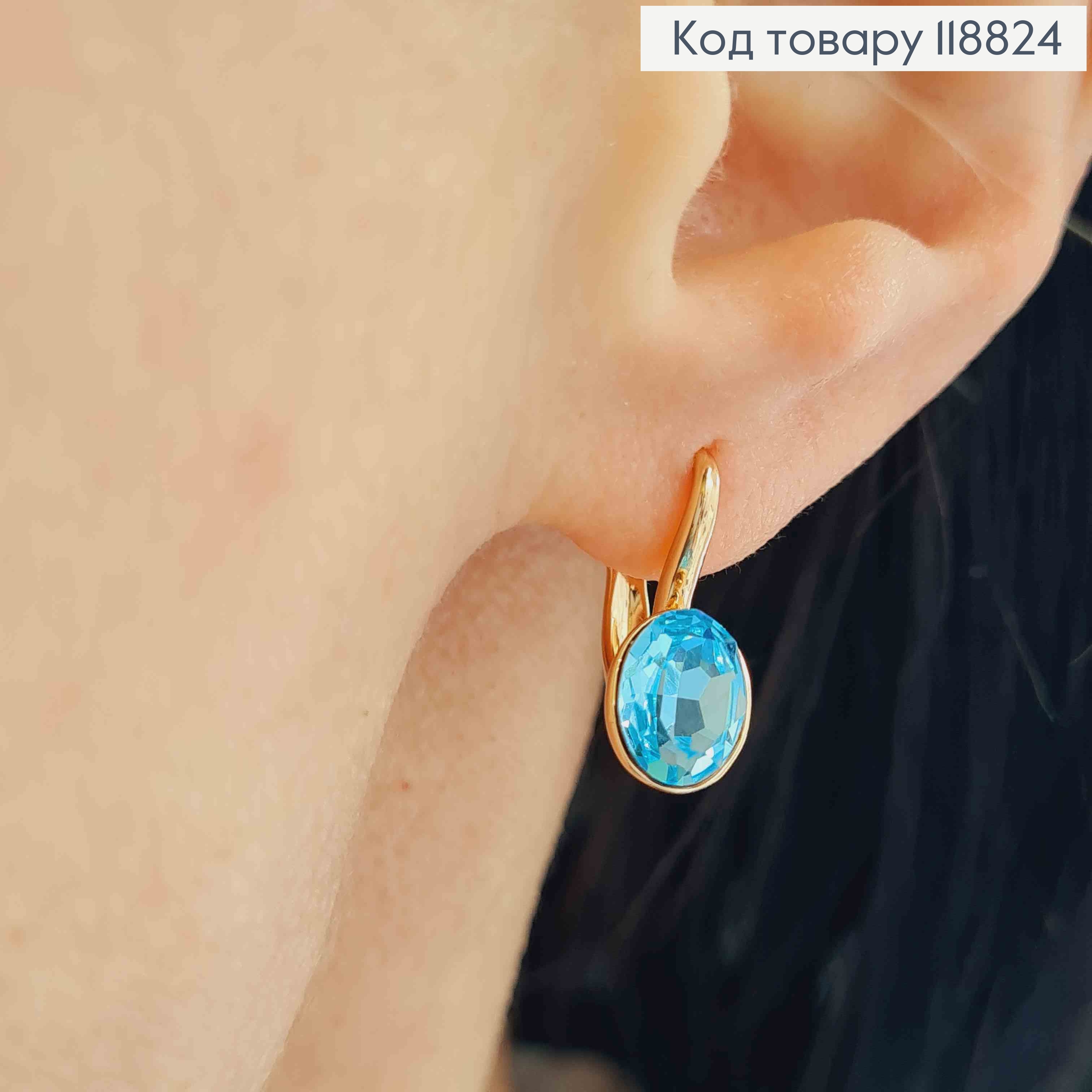 Сережки з Овальним Блакитним каменем Сваровскі, 1,6см, англ. застібка, Xuping 18К