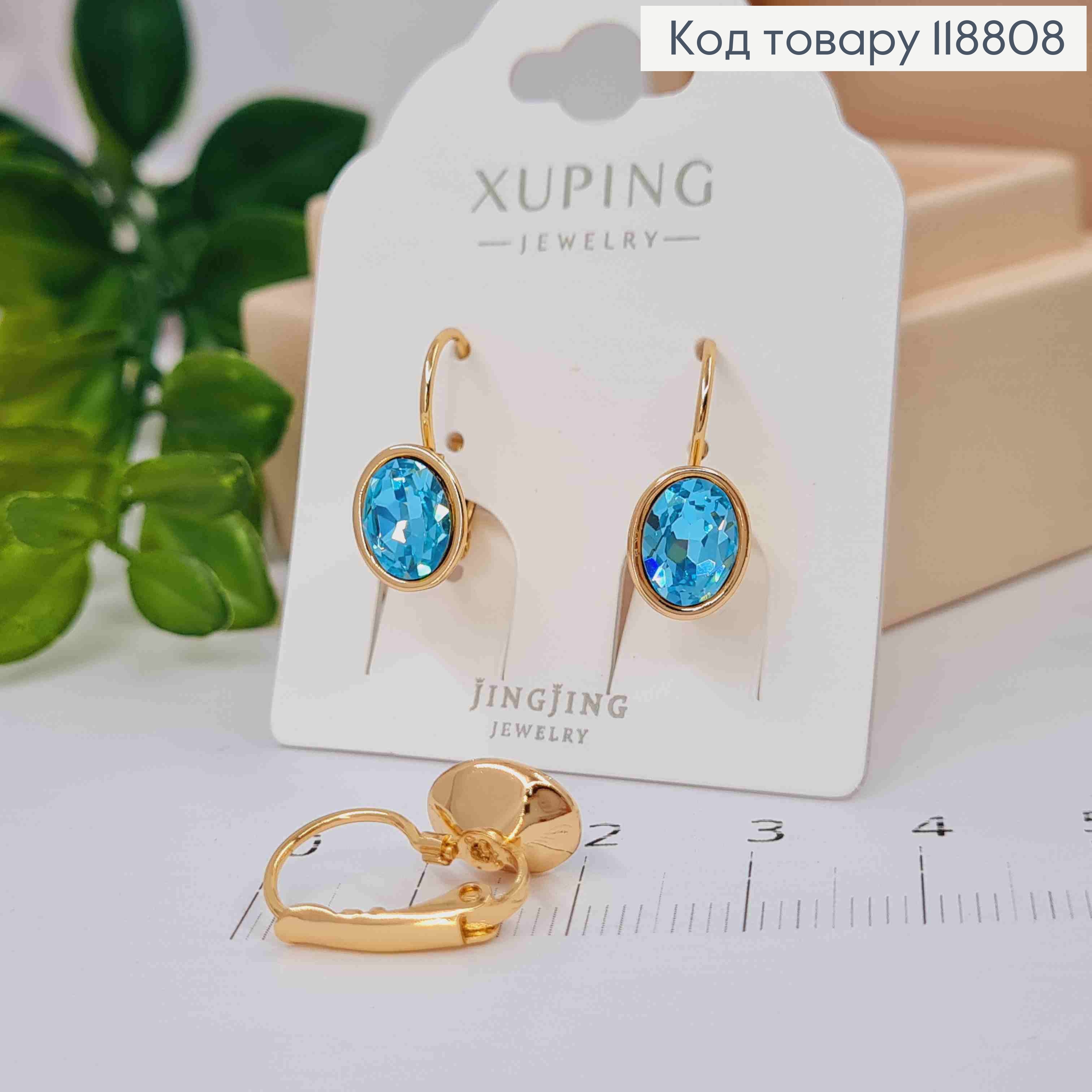 Серьги с Овальным Голубым камнем Сваровски (1см), дл. 1,9 Xuping 18К