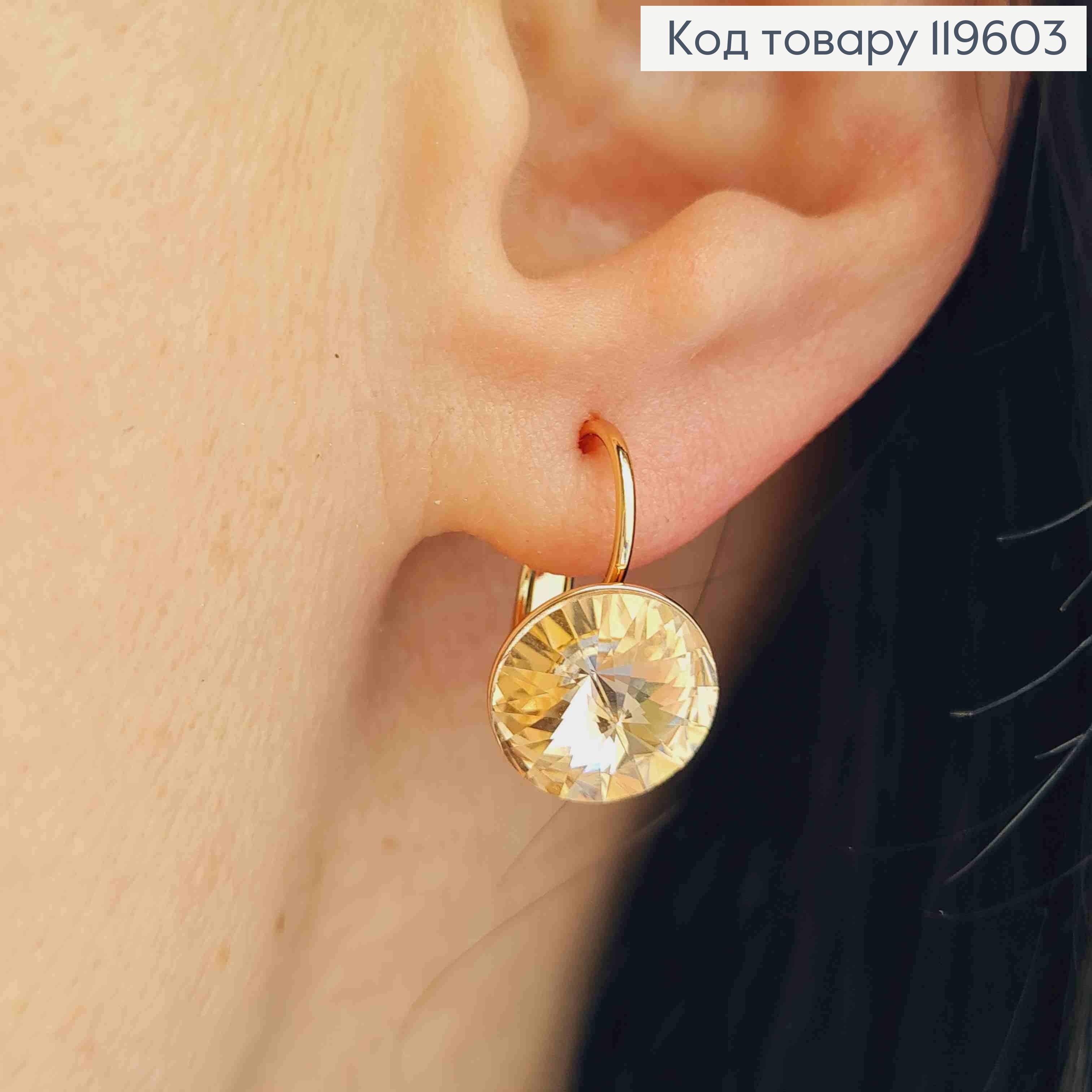 Сережки з Персиковим каменем Сваровські (1,1см), довжина 1,5см, застібка левербек, Xuping 18К