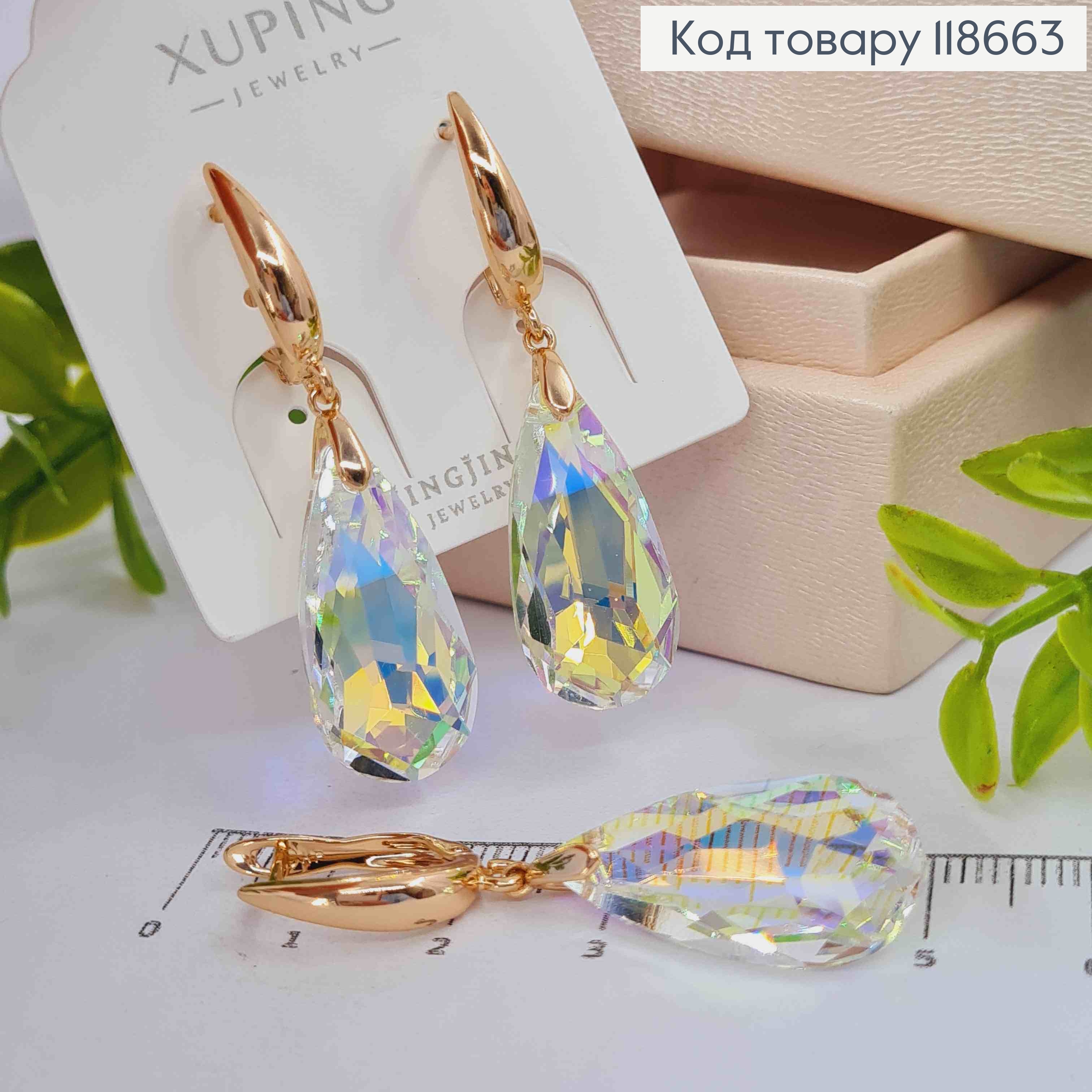 Сережки з підвісним Блискучим каменем Сваровські , 1,8+2,8см, англійська застібка, Xuping 18К