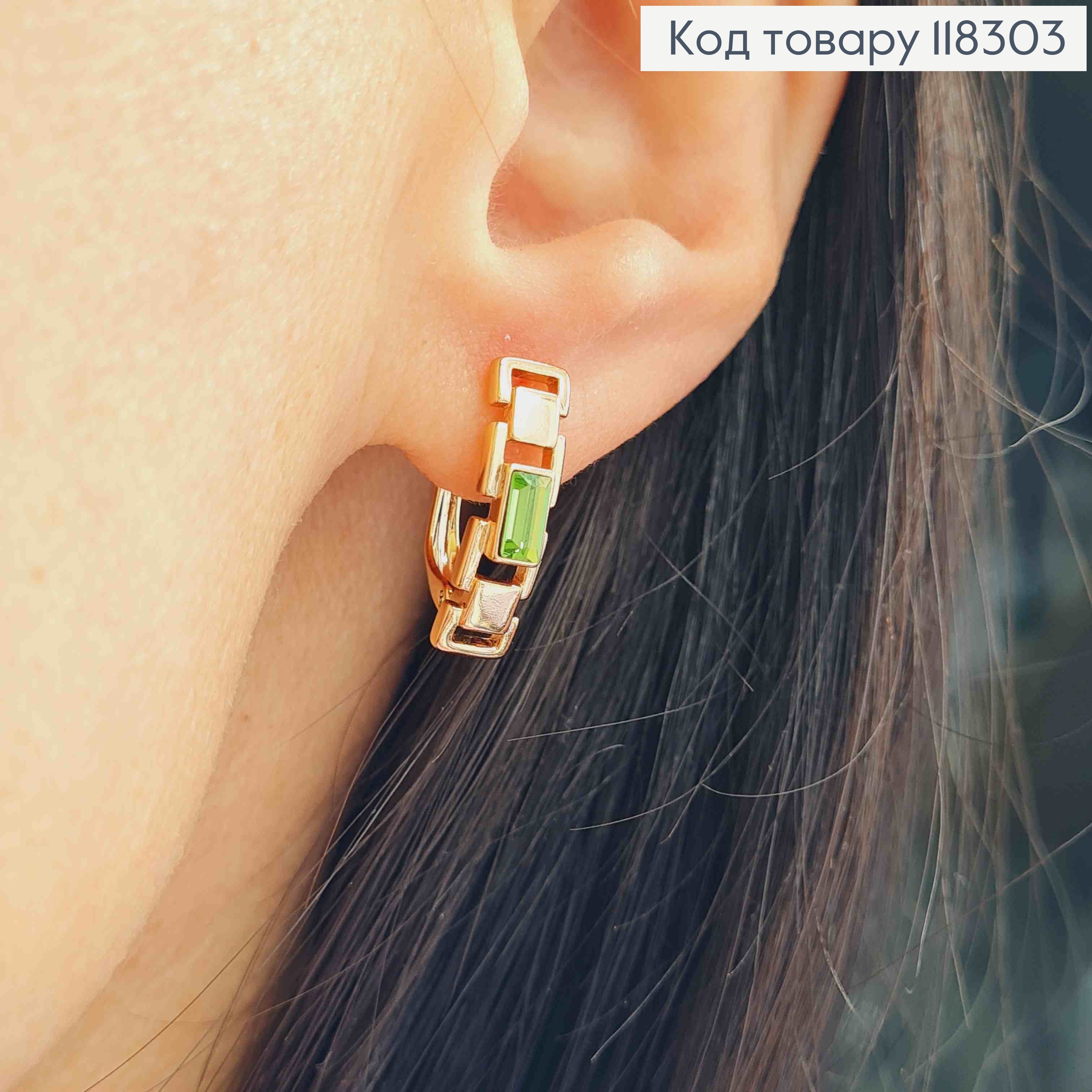 Сережки з Салатовим каменем Сваровскі, 1,7см, англ. застібка, XUPING 18К