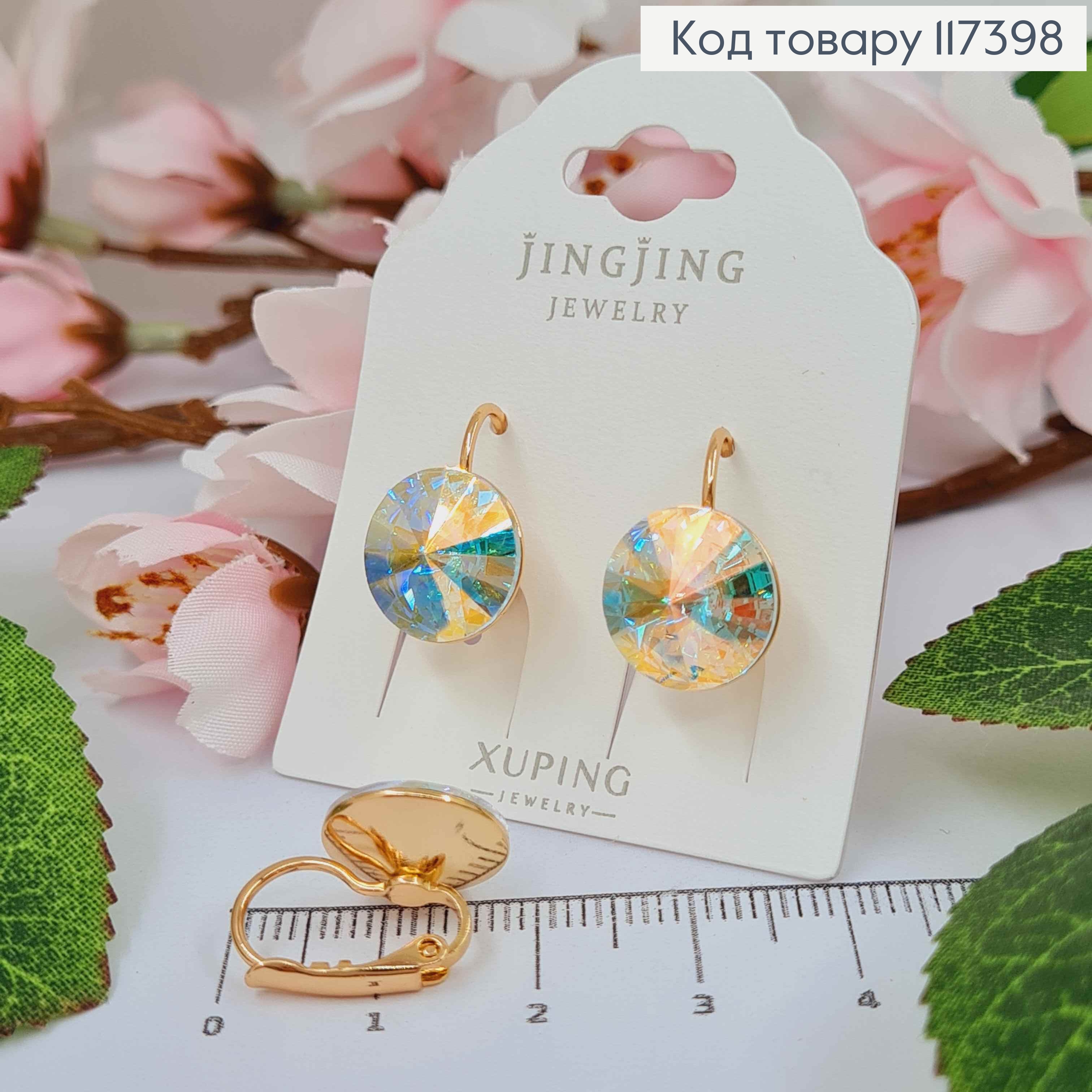 Сережки з випуклим камінцем сваровськи Хамелеон, діаметр 1,2см, француз. застібка, XUPING 18K