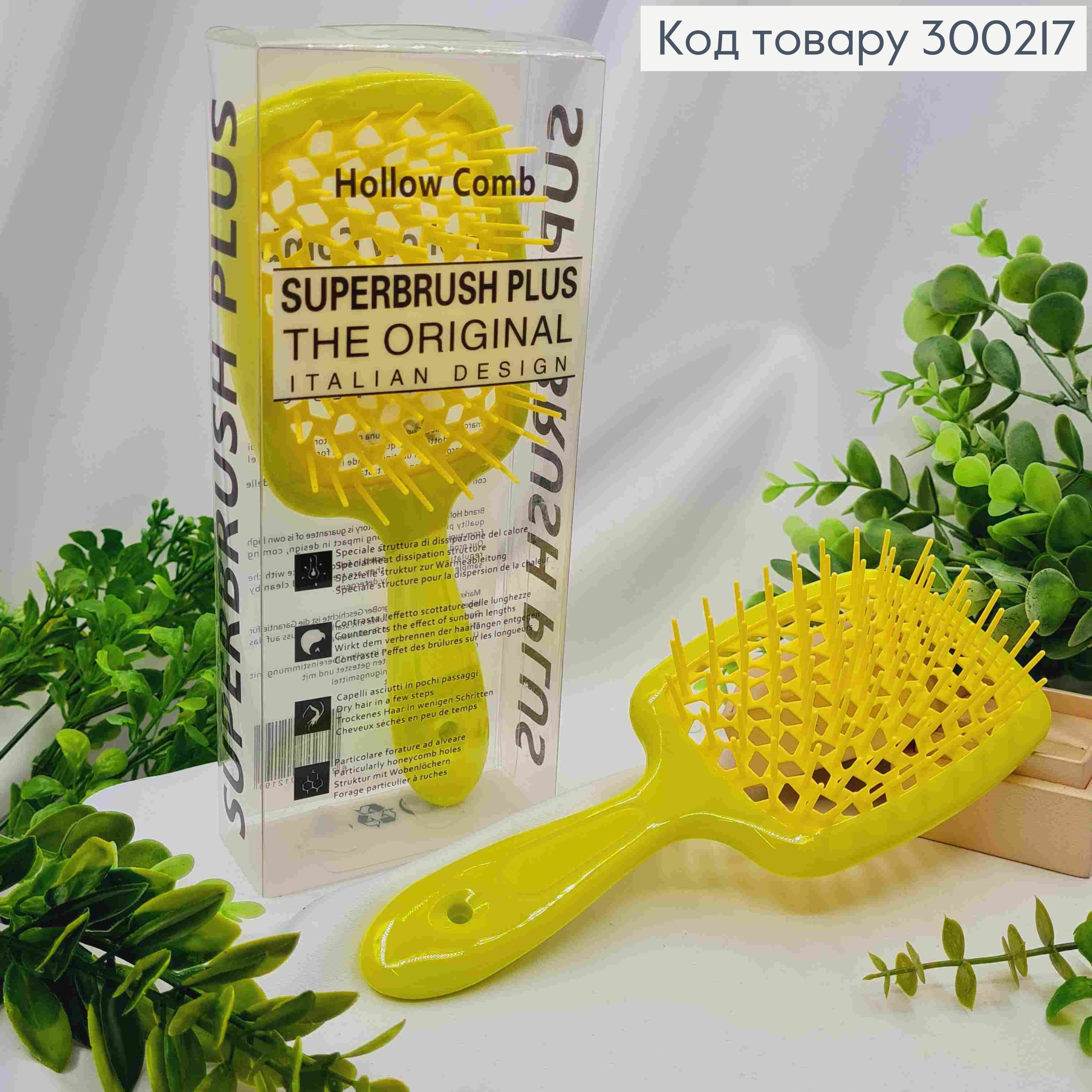 Щітка для волосся прямокутна Лимонного кольору, "Hollow Comb" Superbrush Plus, 20,5*8см