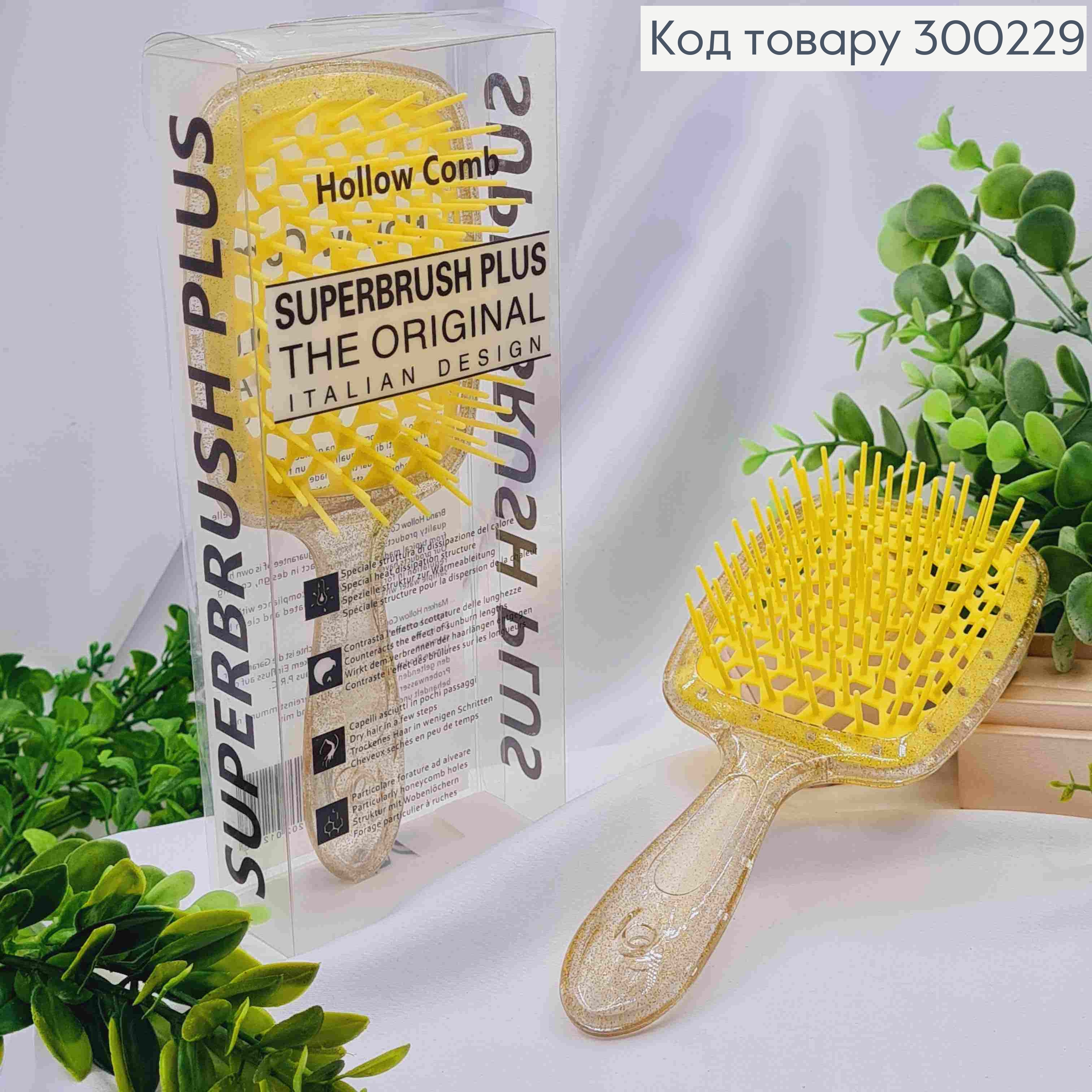 Щітка для волосся Прозора з Золотими блискітками + з Жовтим, "HollowComb" Superbrush Plus, 20,5*8см