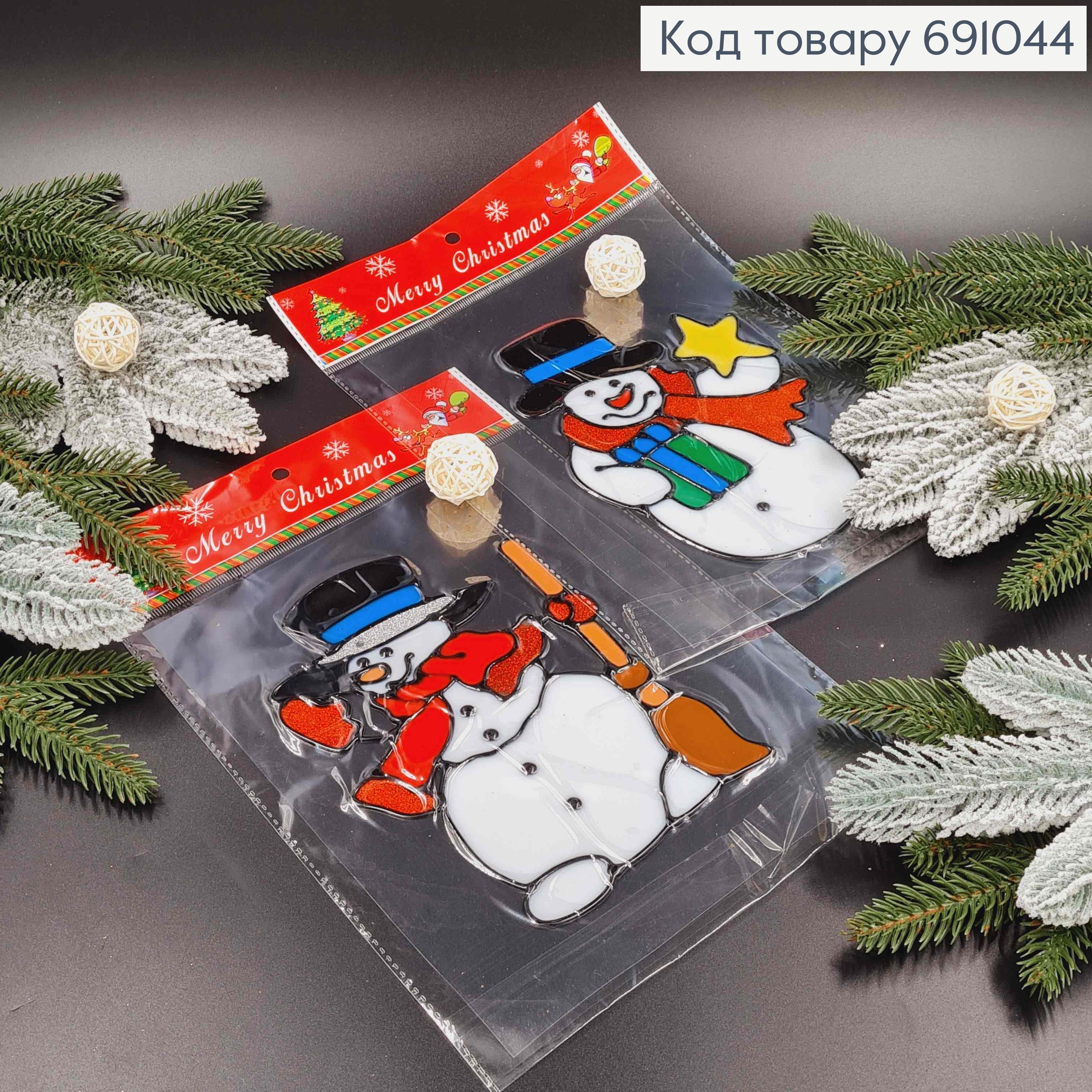 Сніговик з блиском, силіконова новорічна наліпка на скло, (19*14см) в асорт.