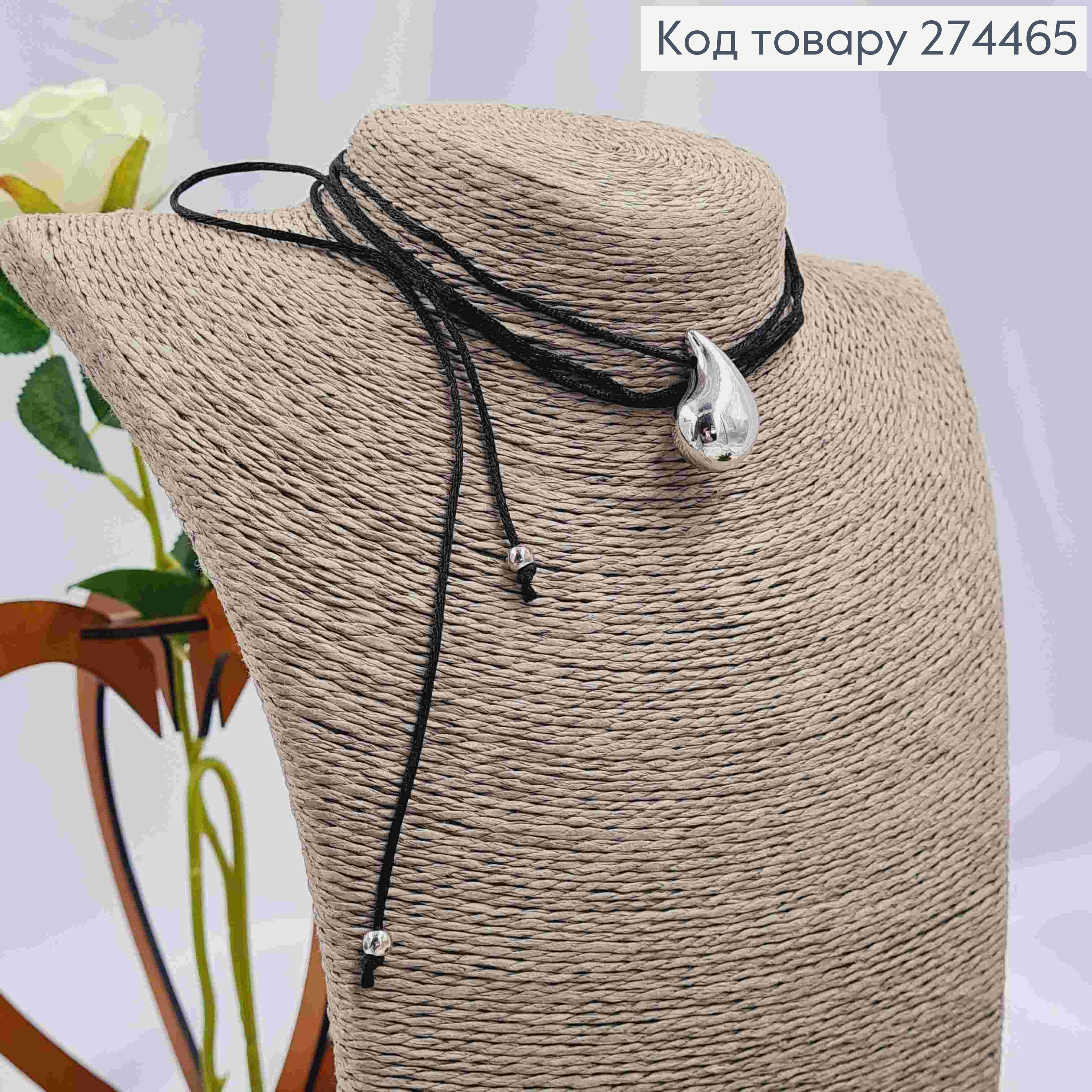 Шнурок з підвіскою КРАПЕЛЬКА срібного кольору (2,5см)