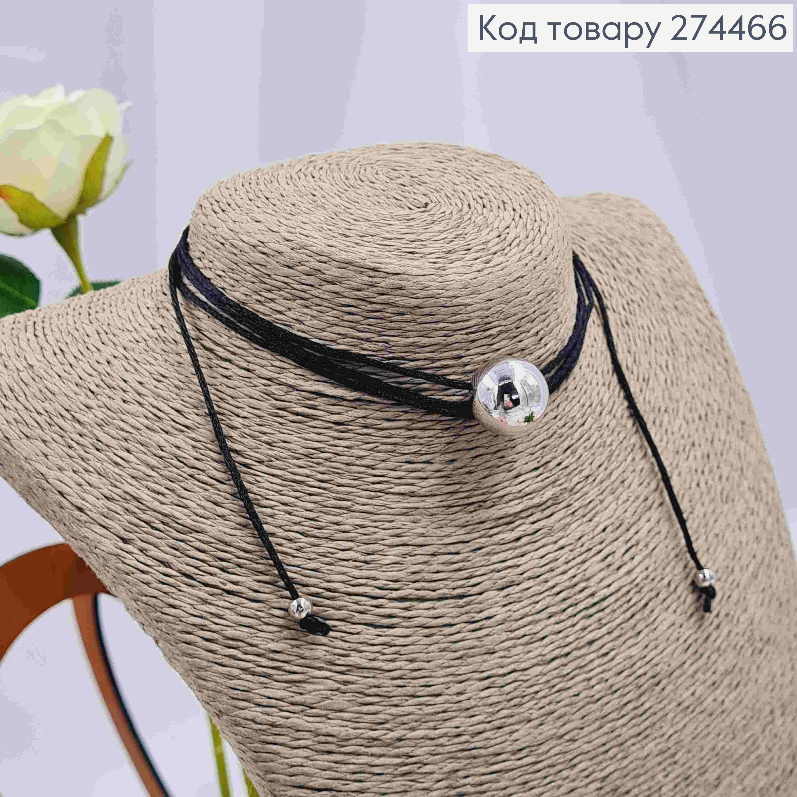 Шнурок з підвіскою КУЛЬКА срібного кольору (1,6см)