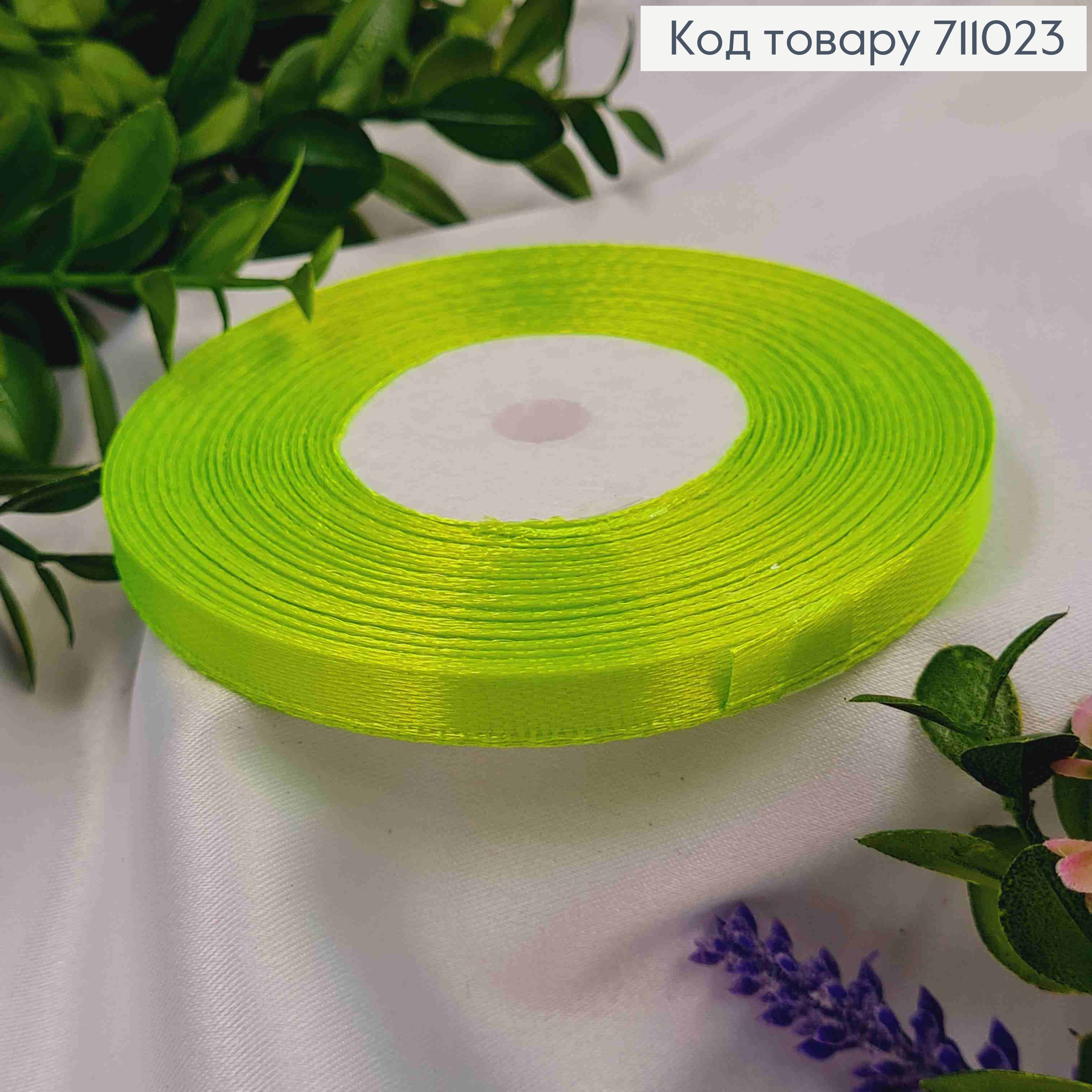 Стрічка атласна ЯСКРАВО-САЛАТОВА (колір 057), ширина 0,6см, довжина 36 ярдів (33м)