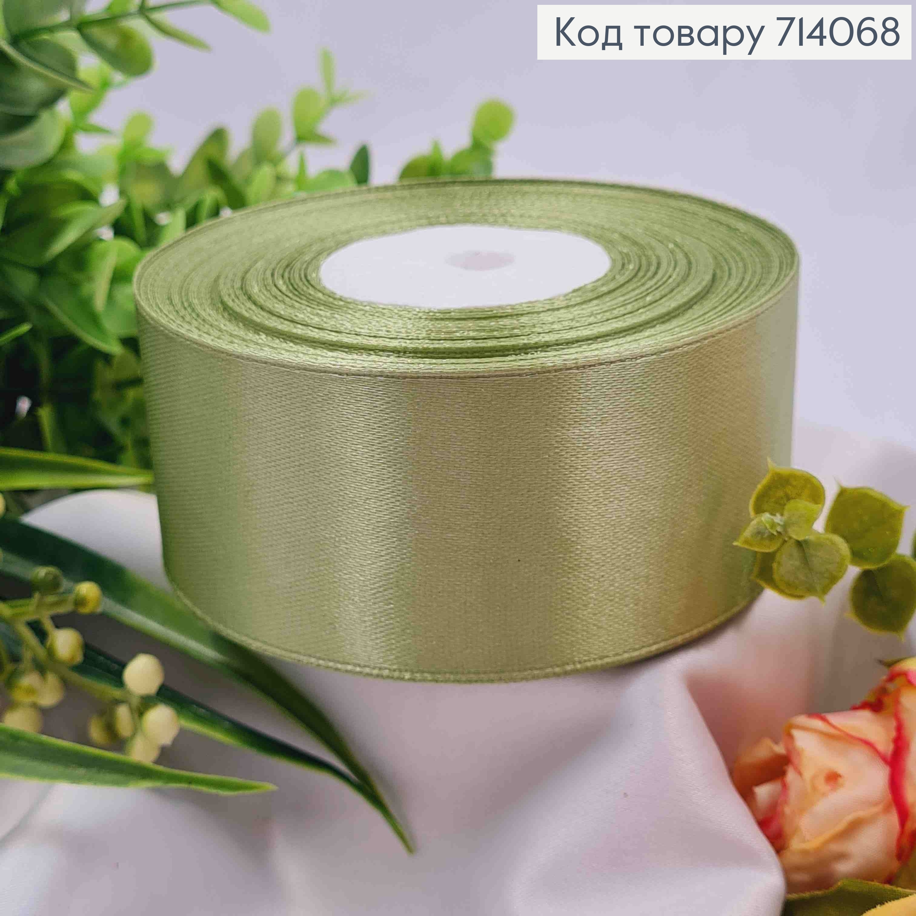 Стрічка атласна СВІТЛО-ОЛИВКОВА (колір 100), ширина 4см, довжина 36 ярдів (33м) 714070 фото