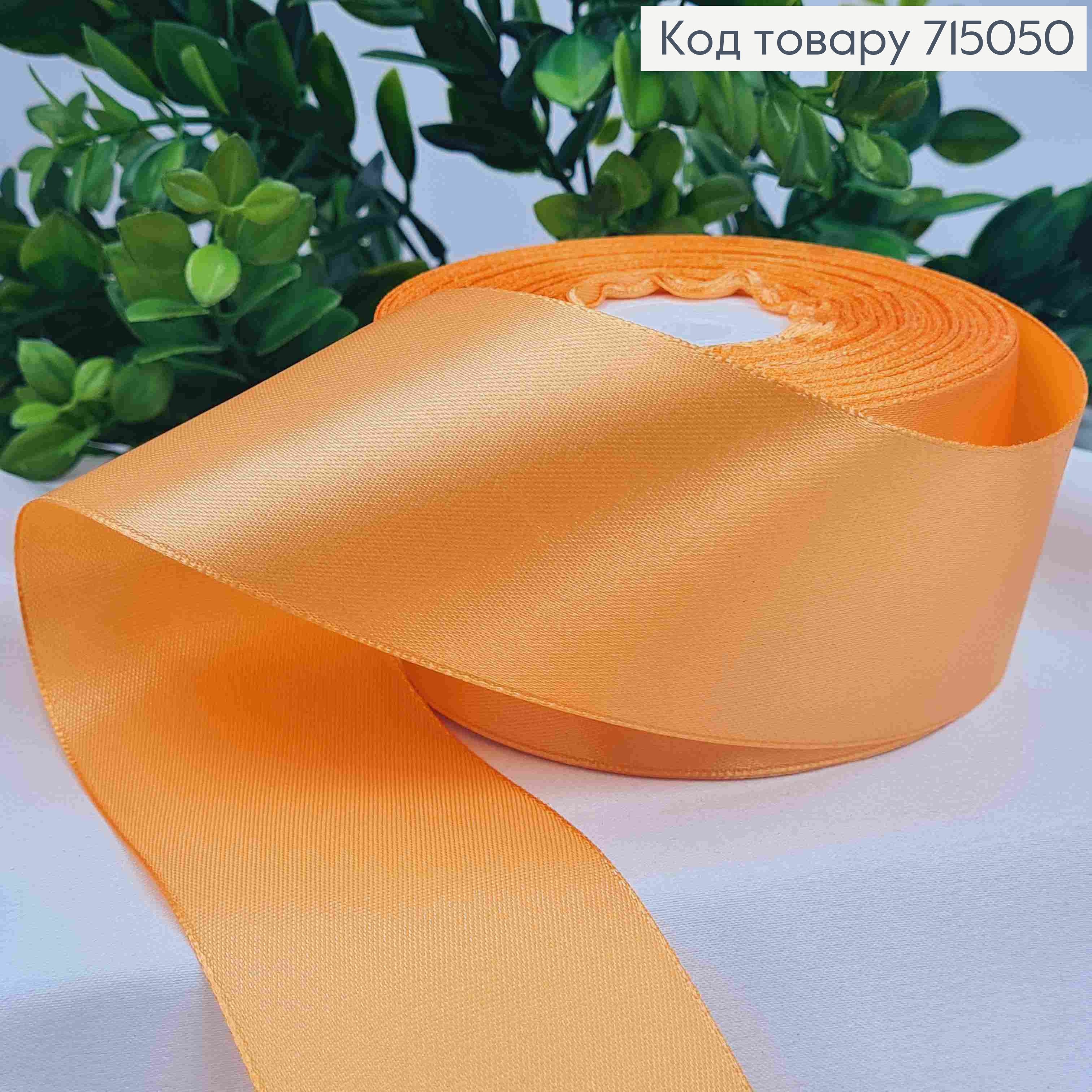 Стрічка атласна ПЕРСИКОВО-ПОМАРАНЧЕВА (колір 23), ширина 5см, довжина 36 ярдів (33м) 715068 фото