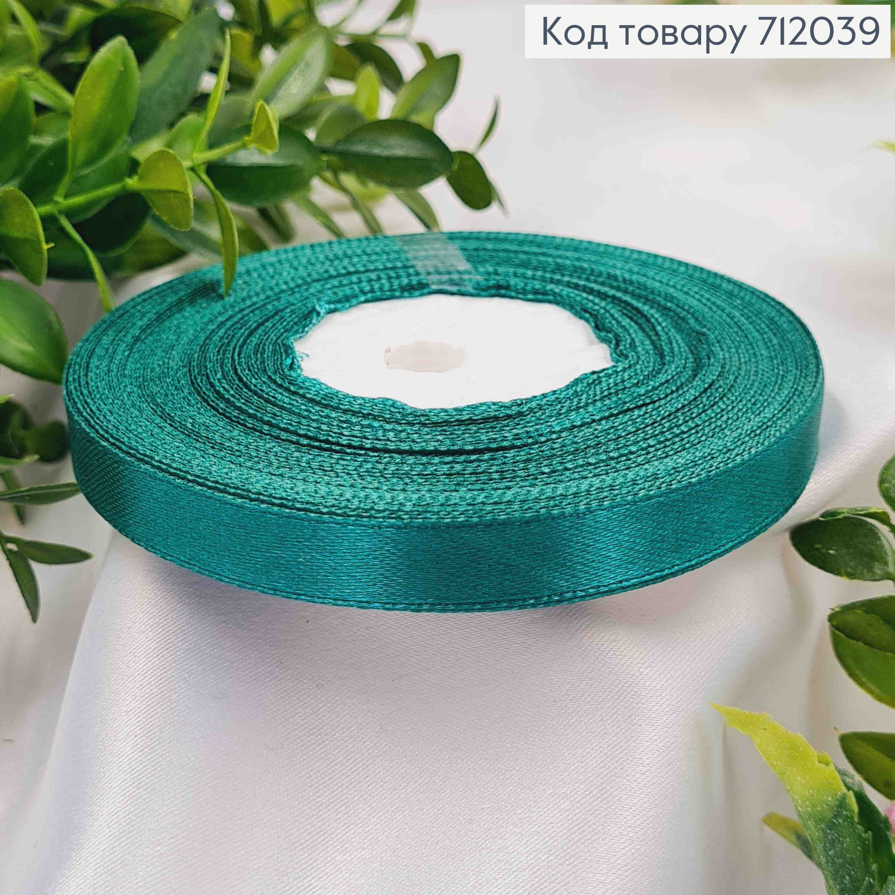 Стрічка атласна ОКСАМИТОВО-ЗЕЛЕНА (колір 096), ширина 0,9см, довжина 36 ярдів (33м)