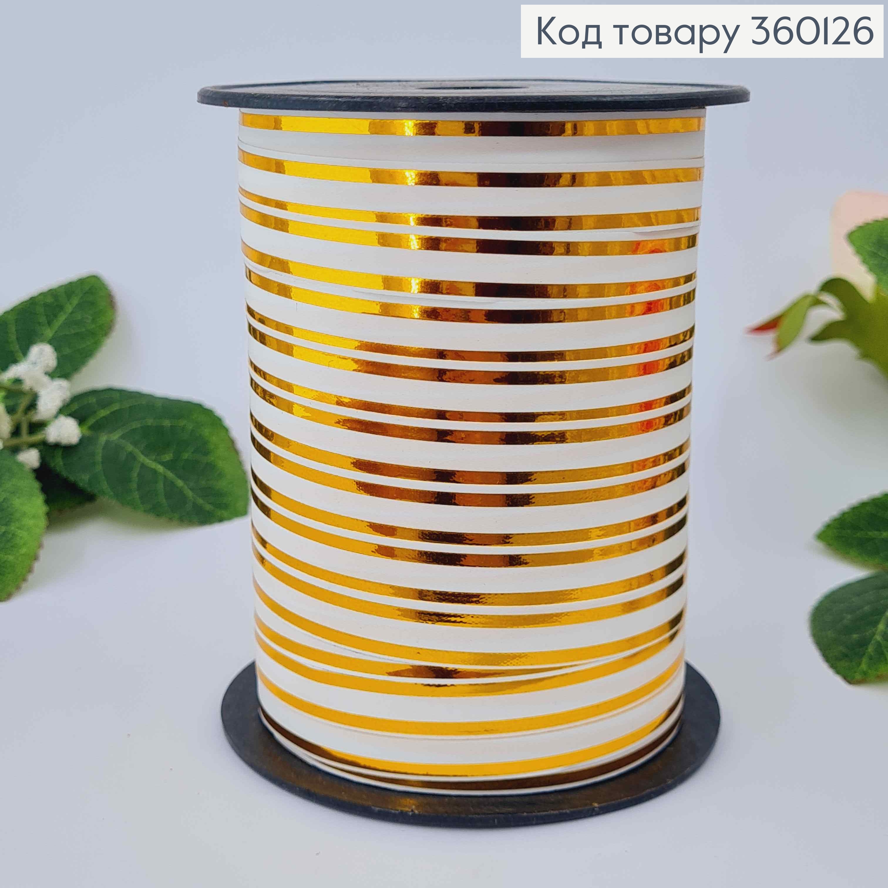 Стрічка-Зав'язка поліпропіленова, БІЛА+ЗОЛОТО, шир.0,5см, довж. 50м