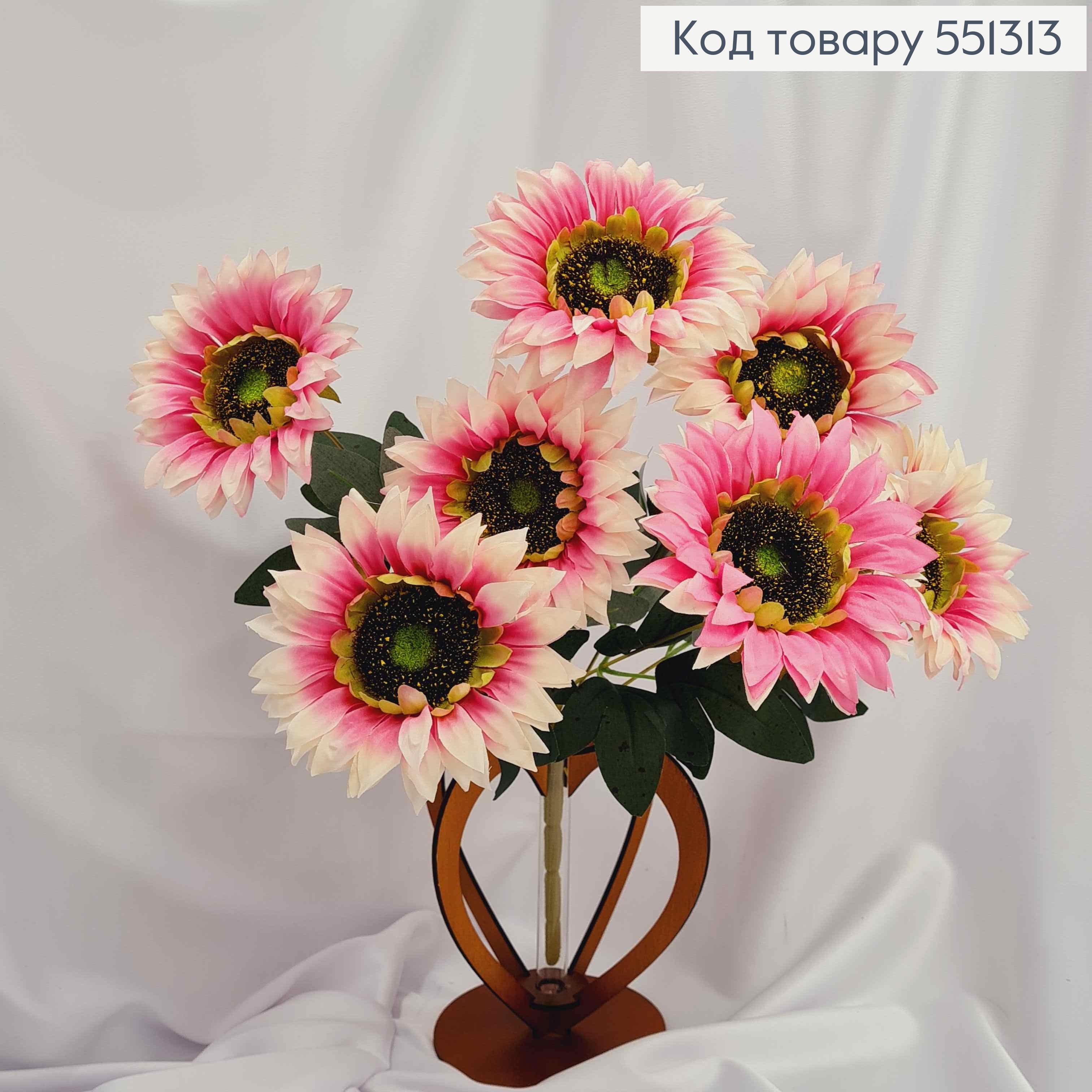 Искусственная композиция ПОДСОЛНЕЧНИКИ, цвет РОЗОВЫЙ, 7 цветочков (по 7см) на металлическом стержне, 42см