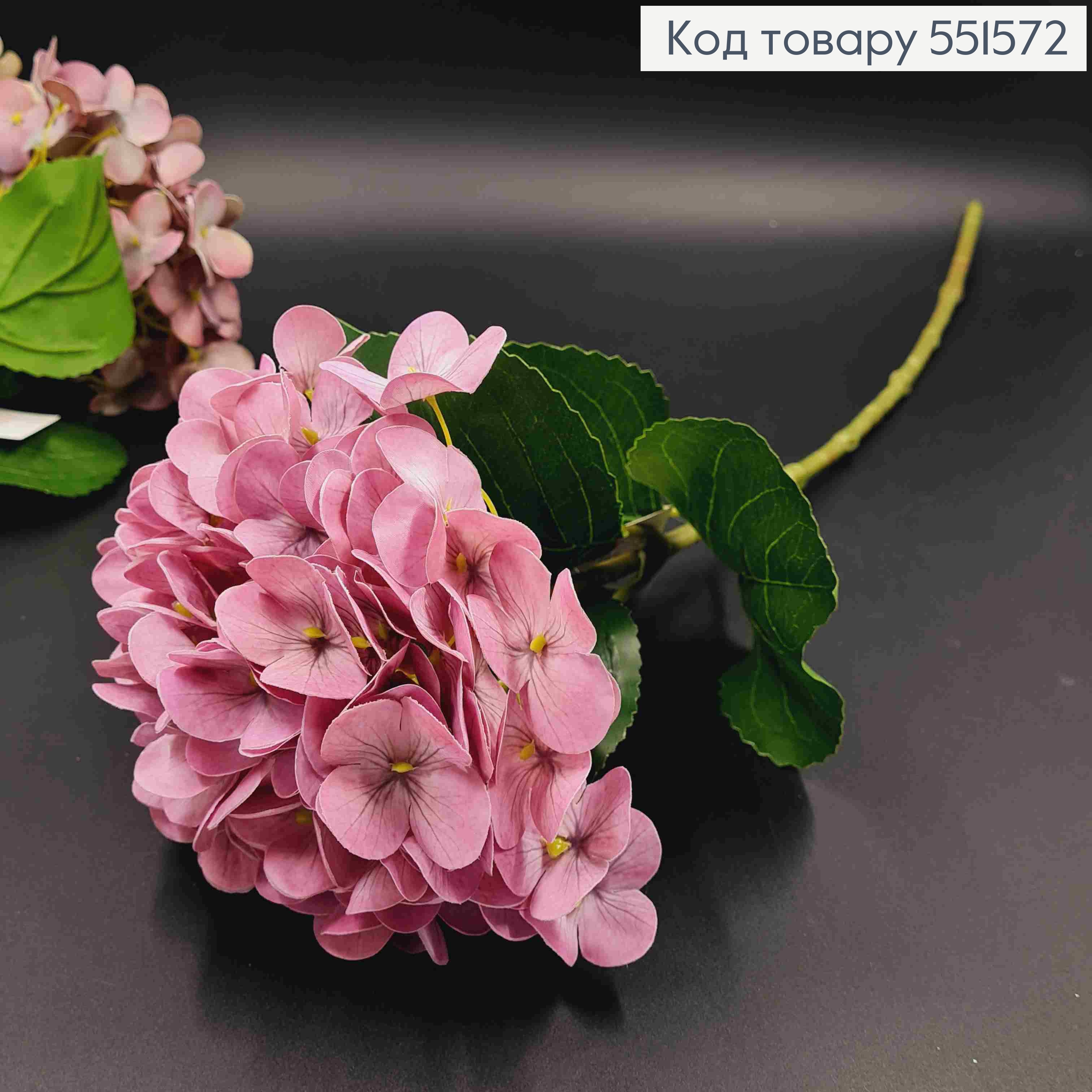 Штучна квітка Гортензії, БЛІДО-РОЖЕВОГО кольору, висота 67см, на металевому стержні 551576 фото
