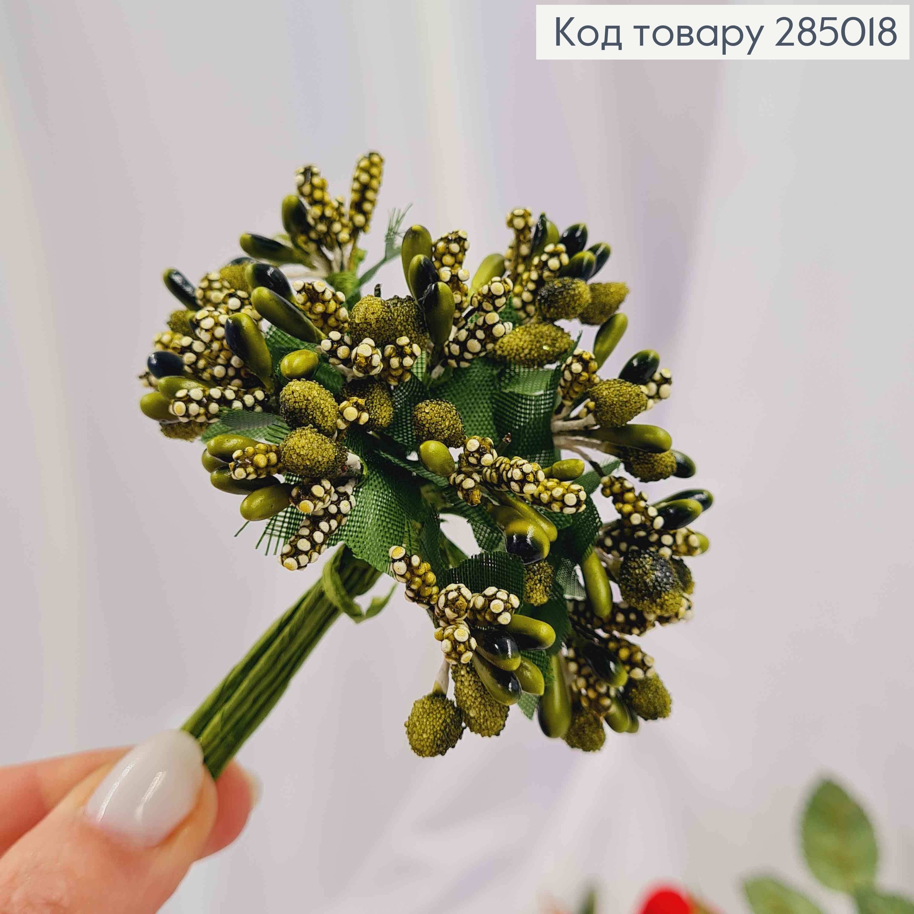 Штучний додаток Тичинки 12 гілочок в пучку, ОЛИВКОВОГО кольору, 9см