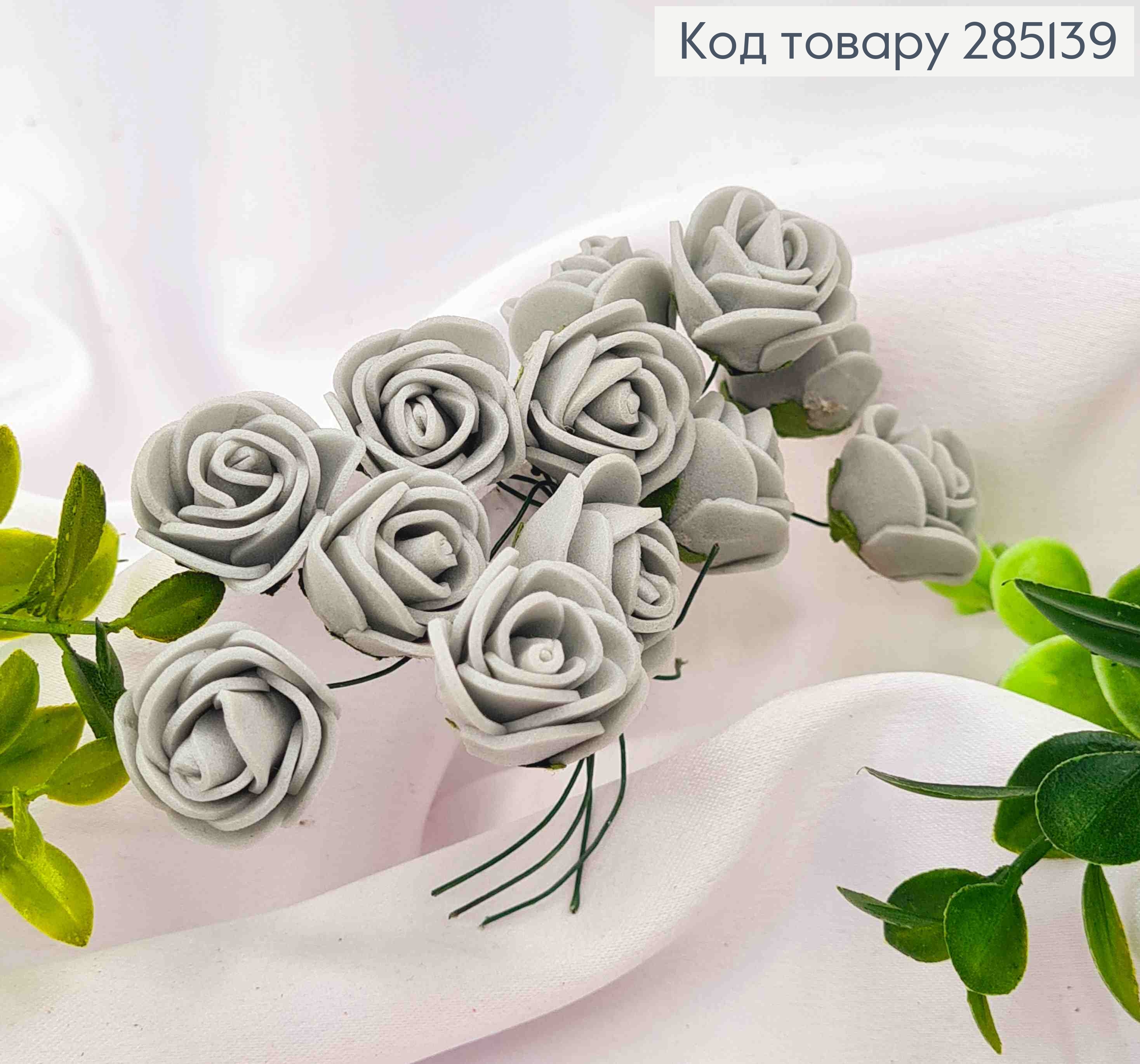 Штучний додаток Троянда фомова (12шт/пучок), СІРОГО кольору, на дротиках, 8см