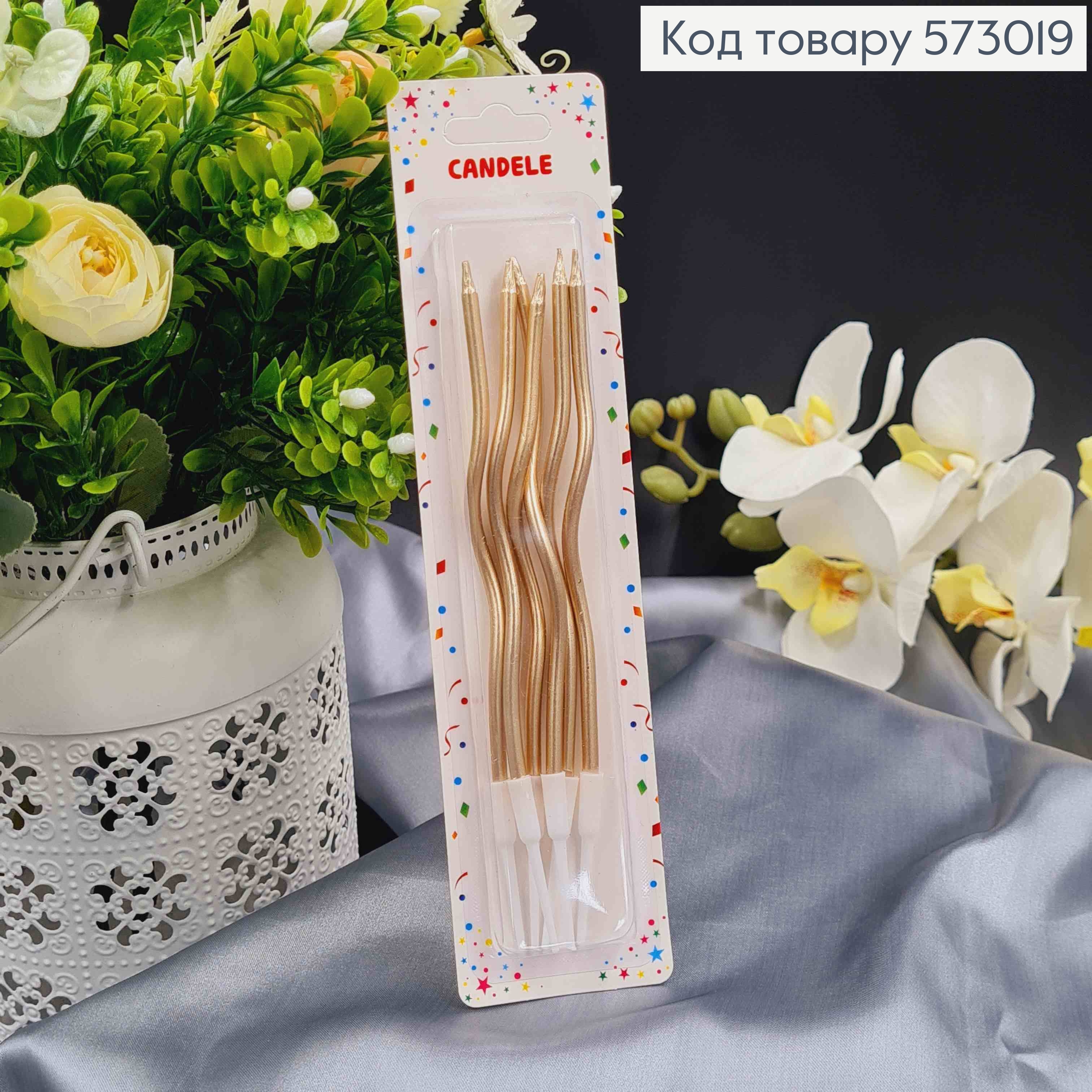 Свічки для торта Кручені, ЗОЛОТІ з глітером,  12шт/уп, 11+4см 573637 фото