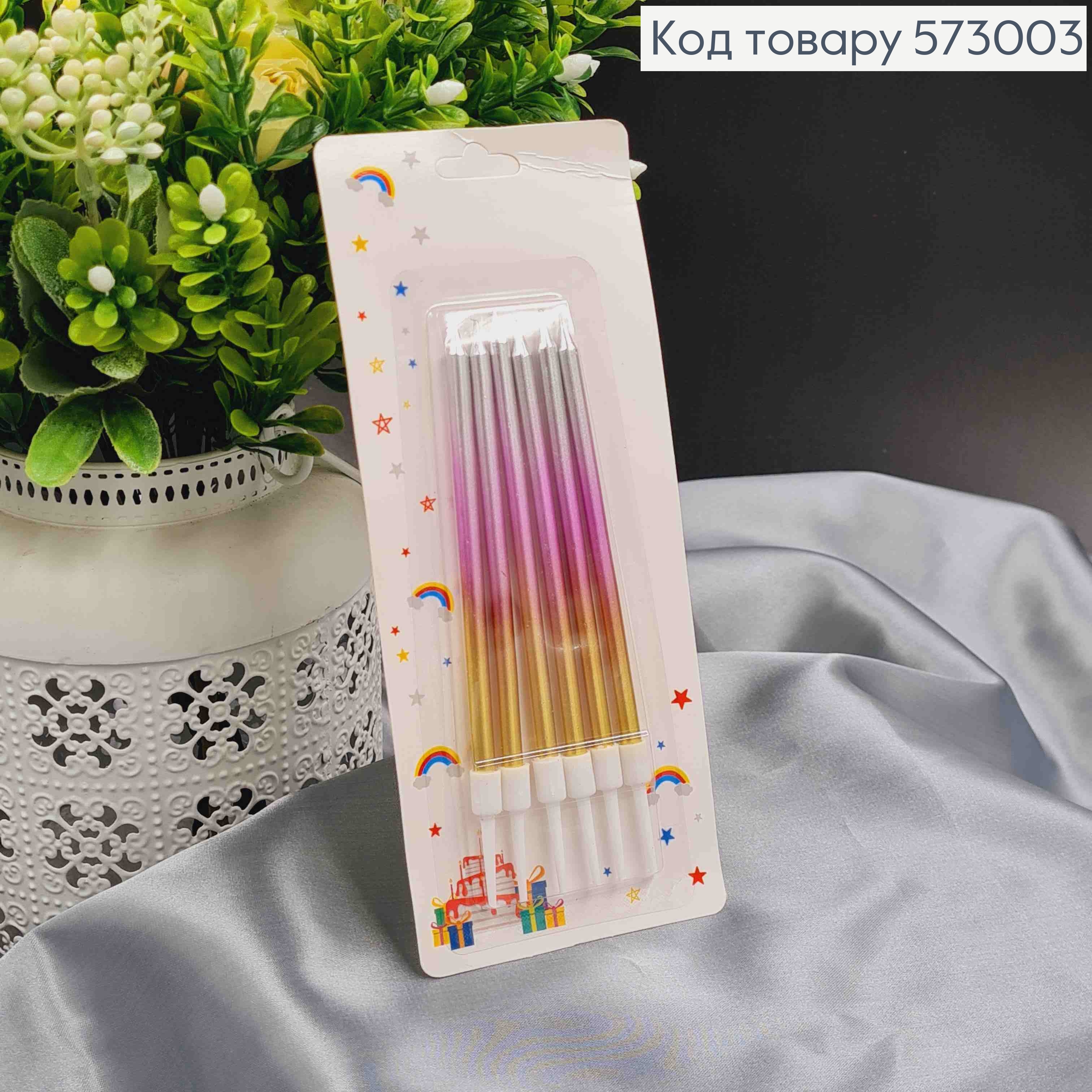 Свічки для торта, Омбре, Сіро-Рожево-жовта, 6шт/уп, 10+3см