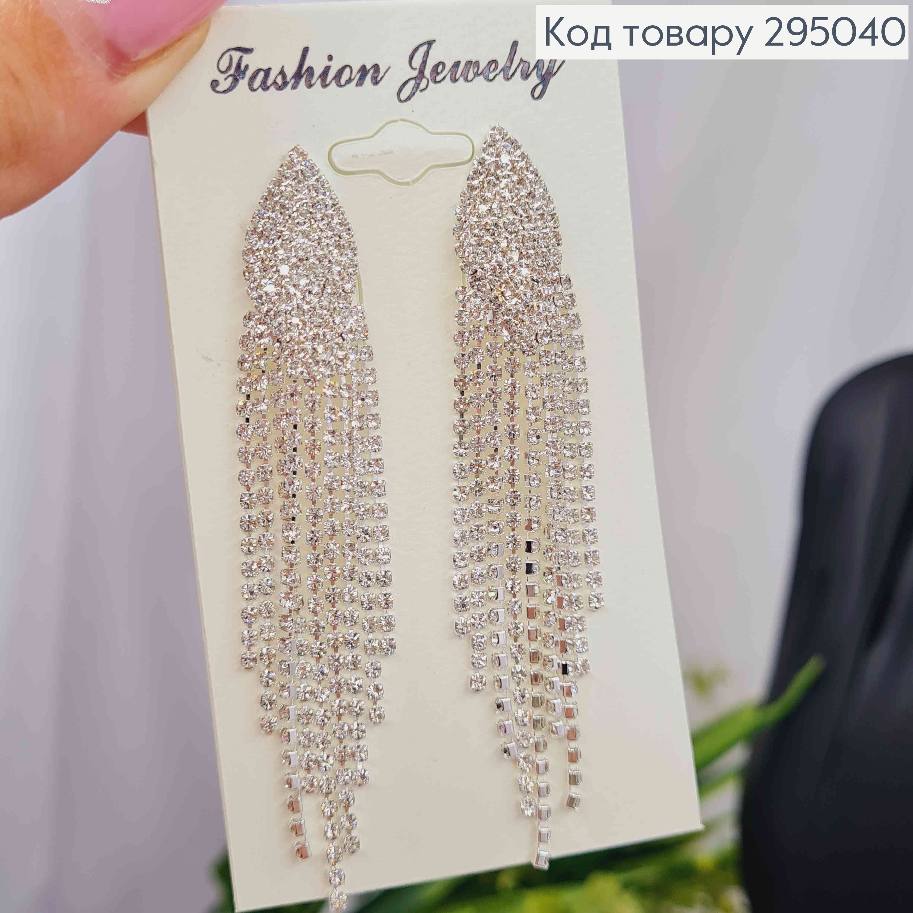 Вечірні-Весільні сережки гвоздики, з ланцюжками з камінців, 8,5см, Срібного кольору 295025 фото