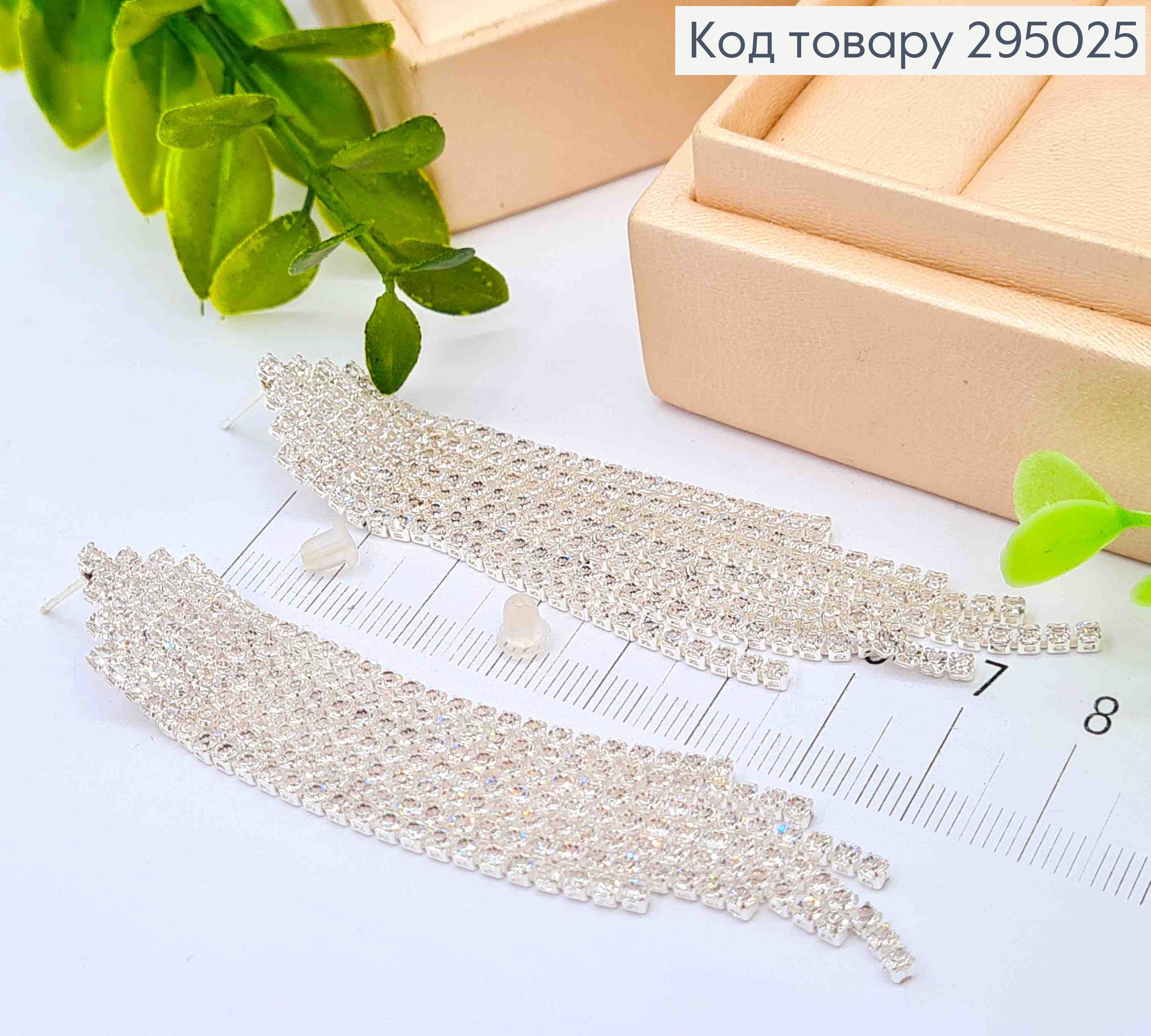 Вечерние-Свадебные серьги гвоздики, с цепочками из камней, 8,5см, Серебряного цвета