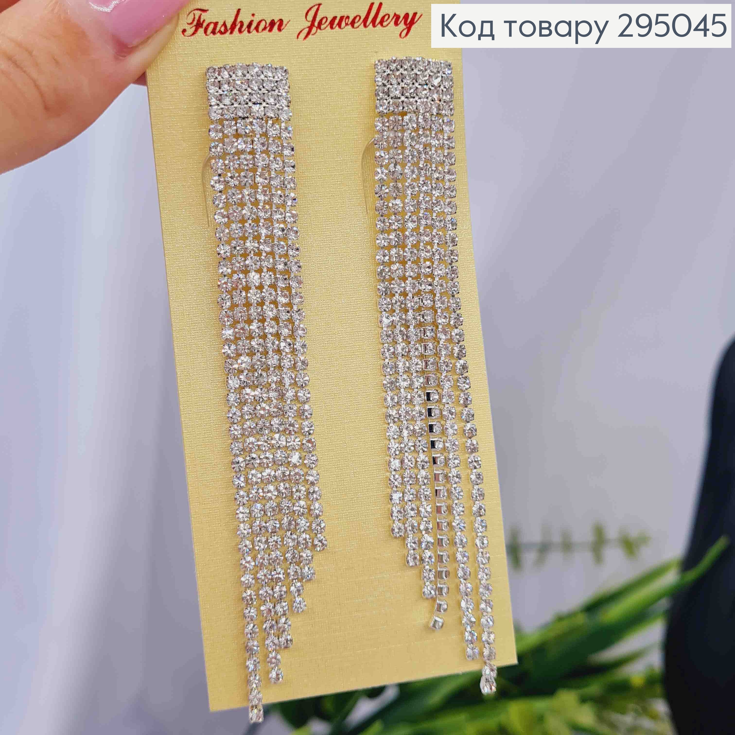 Вечірні-Весільні сережки гвоздики, з ланцюжками з камінців, 8,5см, Срібного кольору 295025 фото