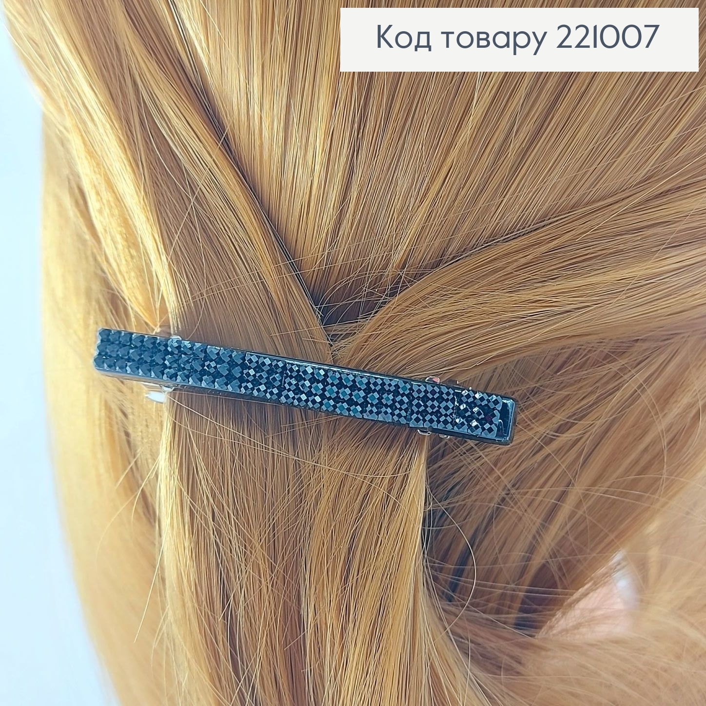 Заколка автоматик "НІЖНИЙ БАНТИК" з Блискучим камінням, 8см, Чорного кольору 222163 фото