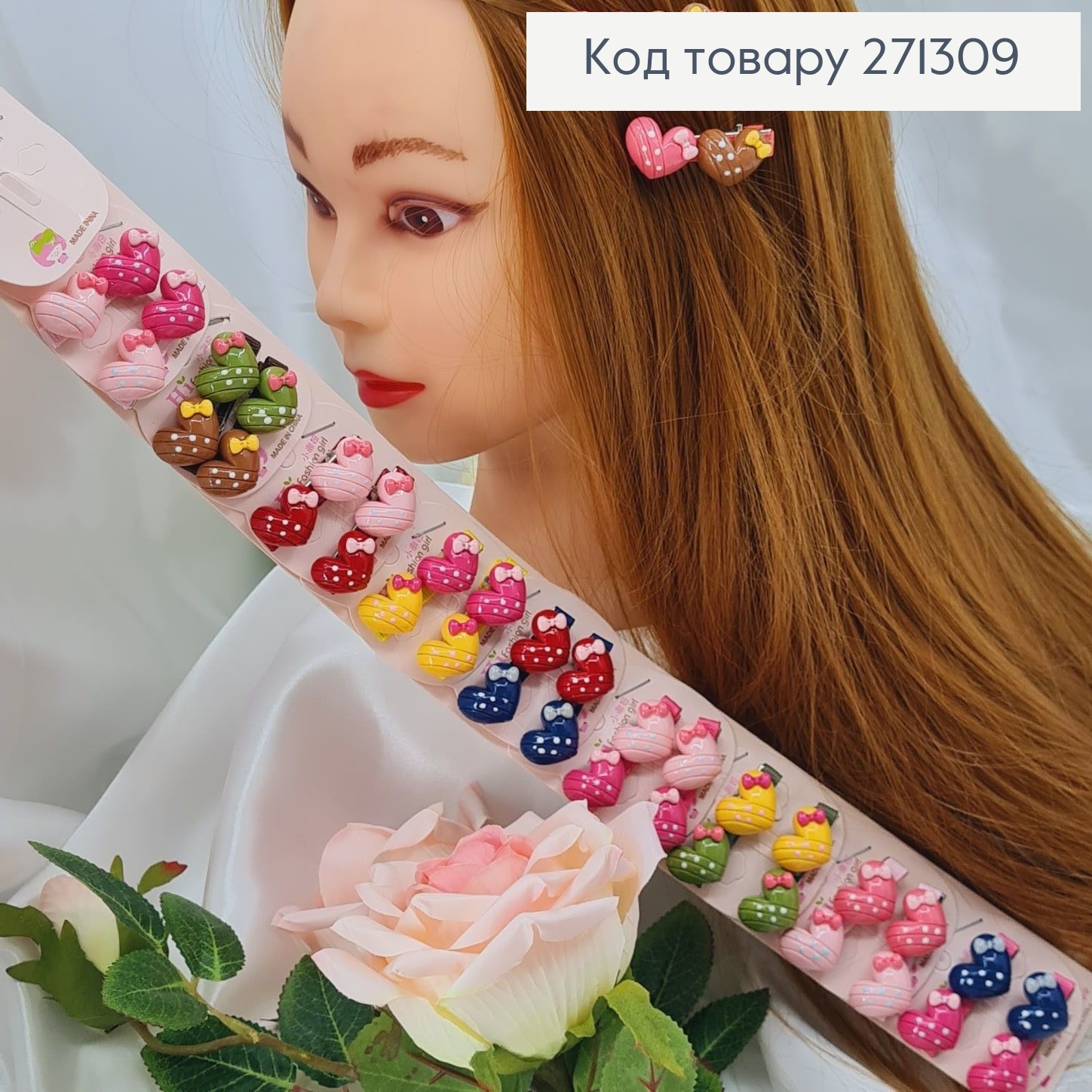 Набір заколка тік-так (20шт), "Сердечко" з Камінцями, Пастельні кольори, заколка 4,5см, серце 2,5см 271517 фото