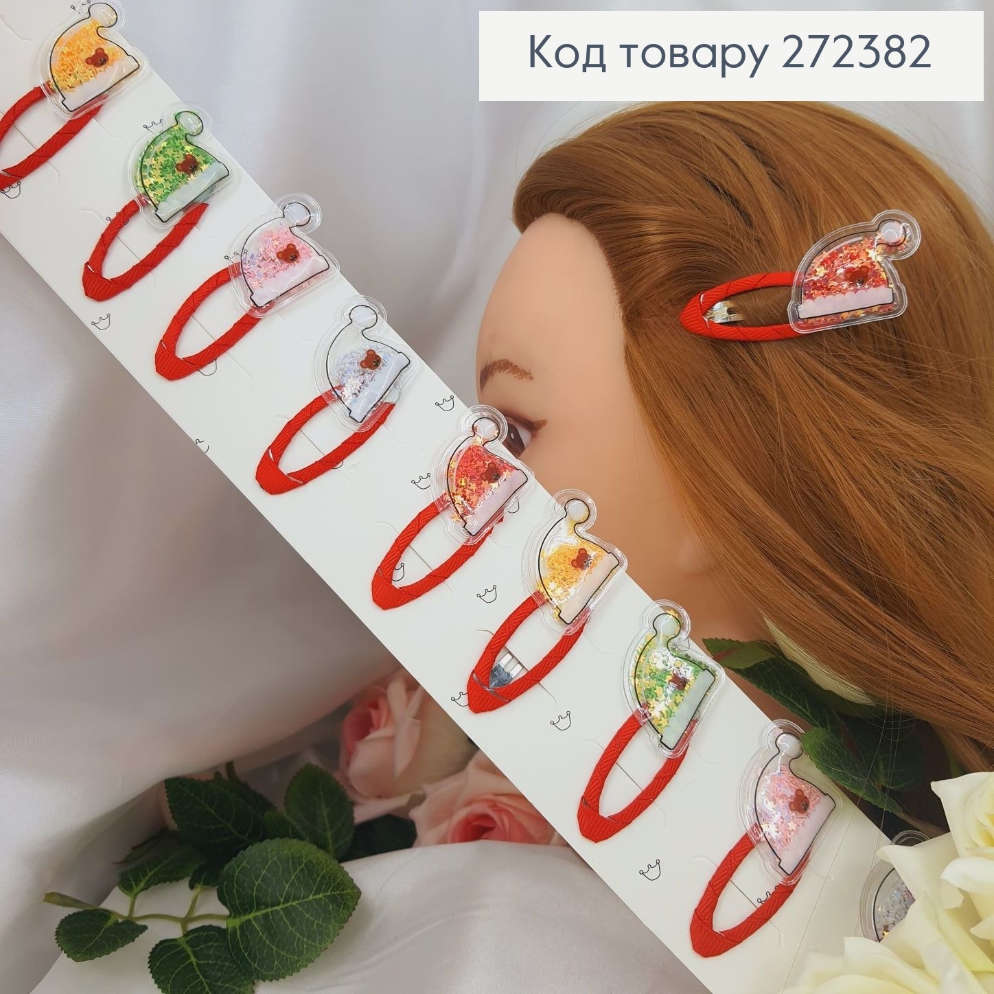 Заколка дитяча тік-так Новорічна шапка 5см, 10шт/уп.