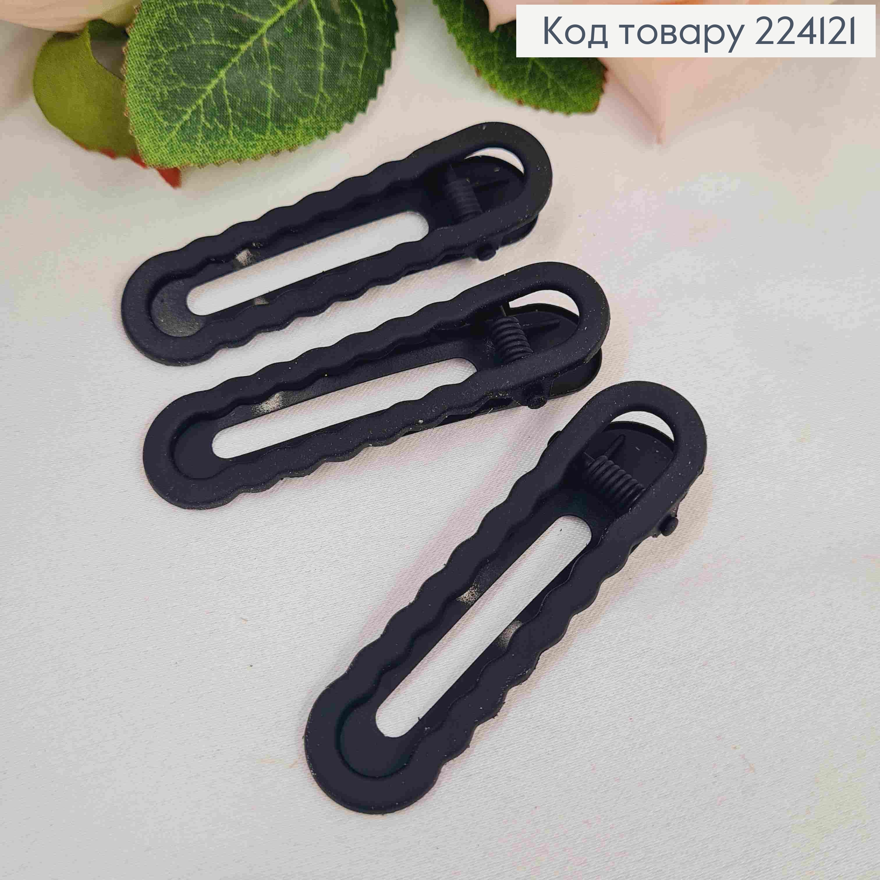 Заколка стріла, метал, Овальна з хвилястими краями, 6см, Чорного кольору, 3шт/уп