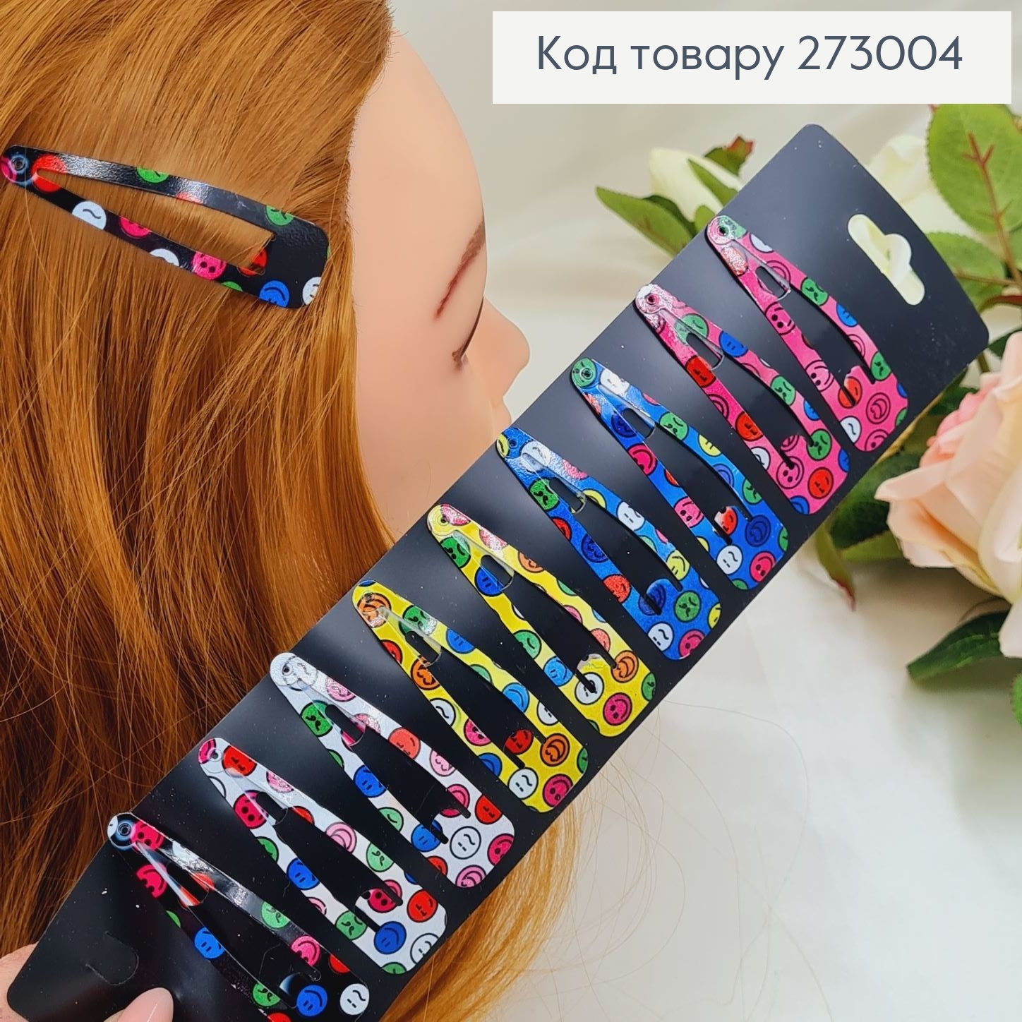 Заколка тік так дитяча Смайлик в ас. 12 шт/уп.