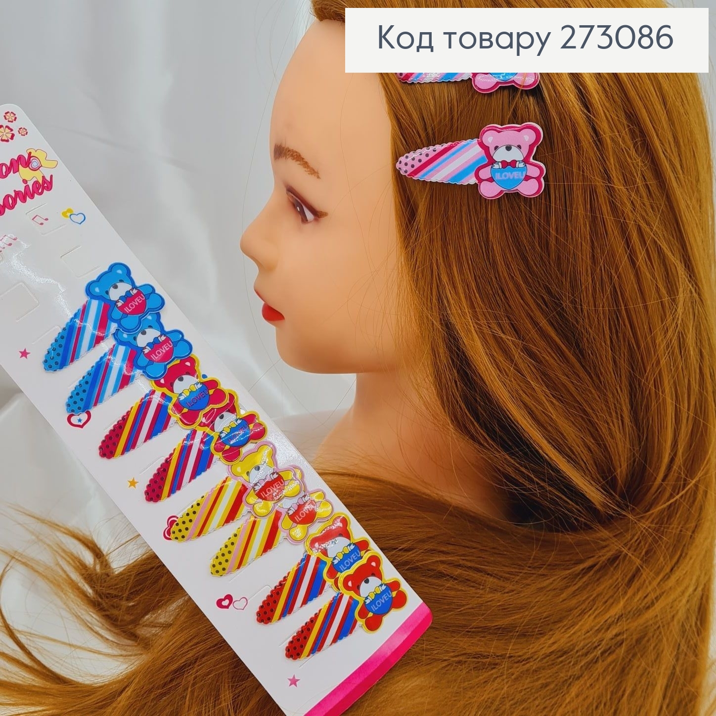 Заколка тік так дитяча Мішка в асорт. 10 шт/уп.