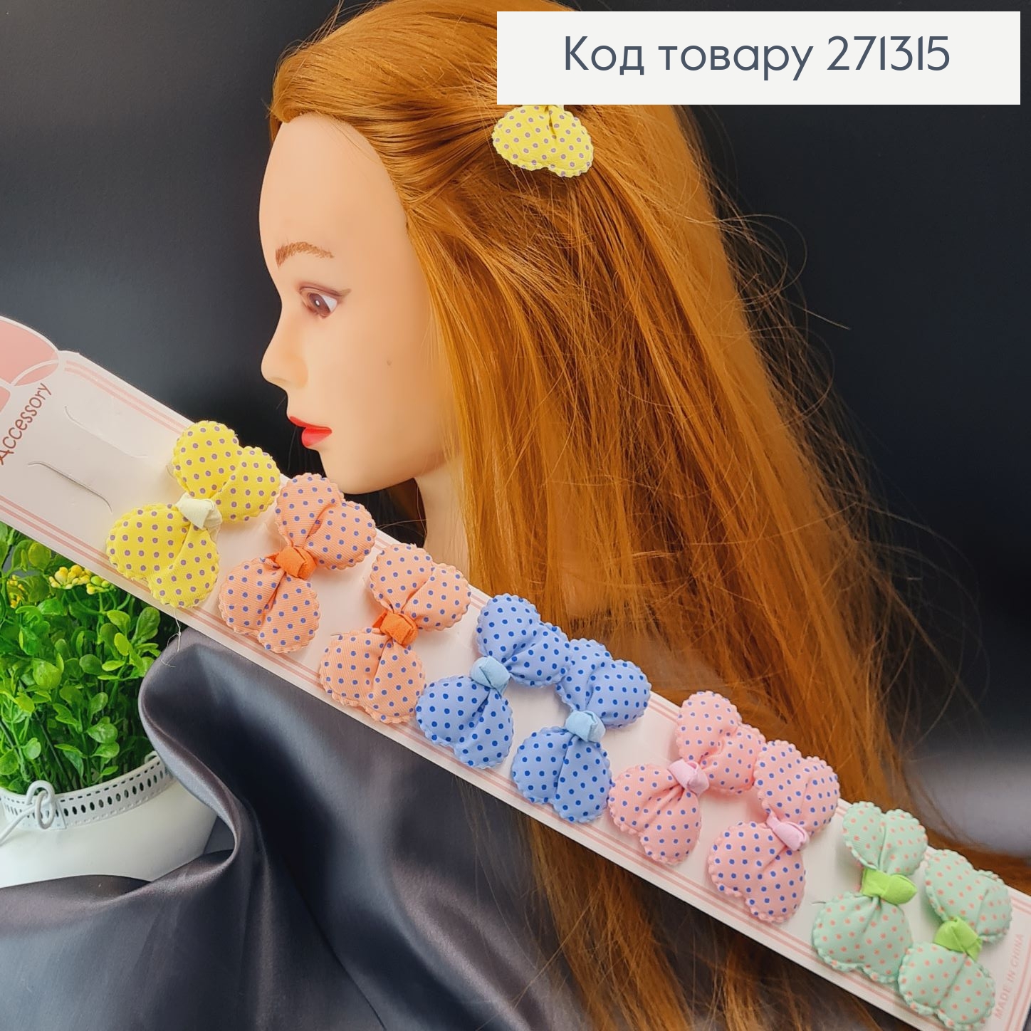 Набір заколка тік-так (20шт), "Бантик" з Камінцями, Пастельні кольори, заколка 4,7см, бантик 2,5см 271518 фото