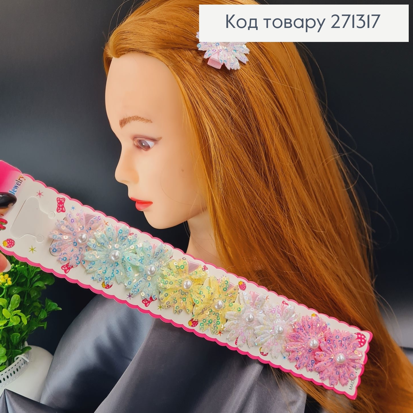 Заколки дитячі Квітка Блиск з перлинкою 10шт/уп
