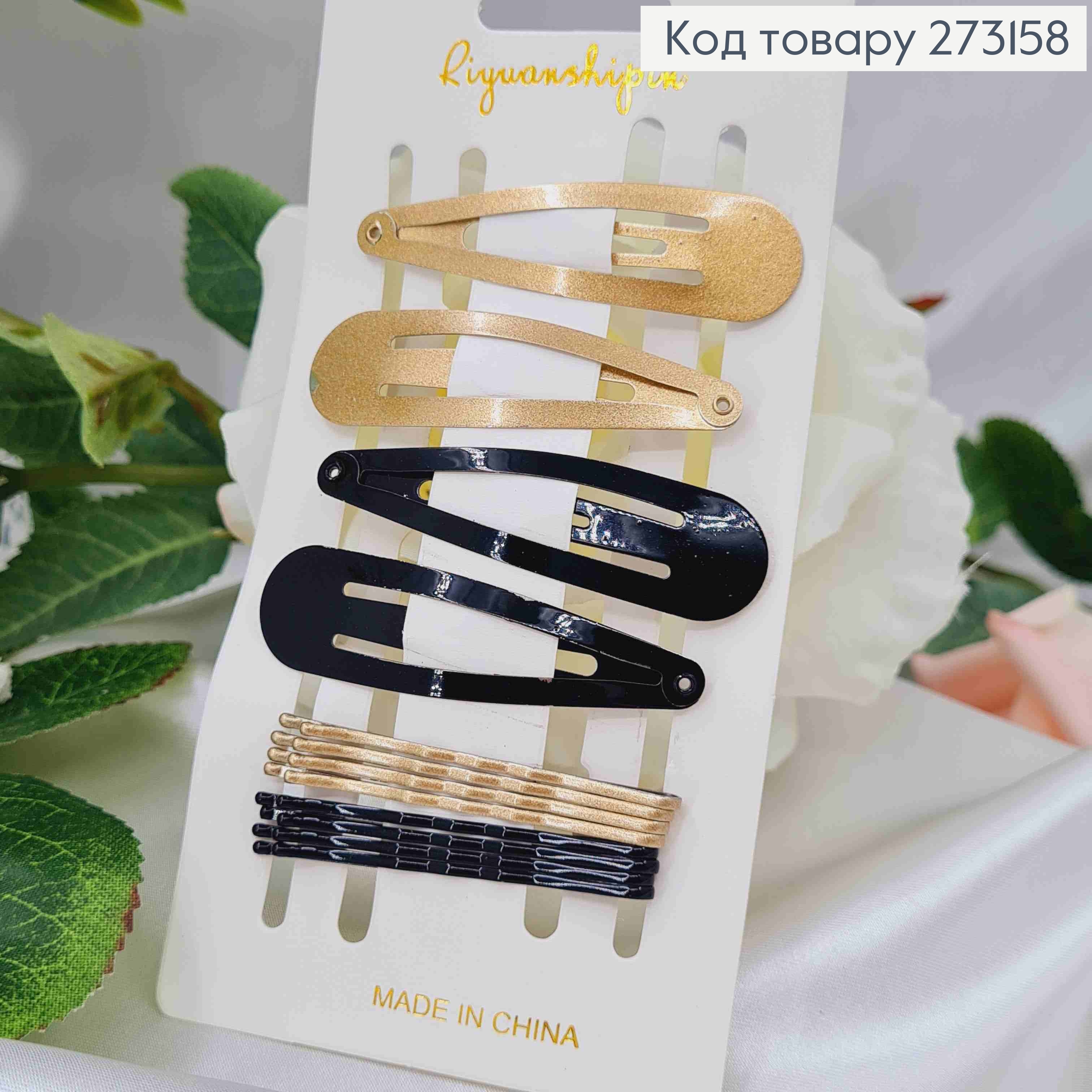 Заколки Тік-Так, 4шт. Золотисті/Чорні + невидимки 8шт.