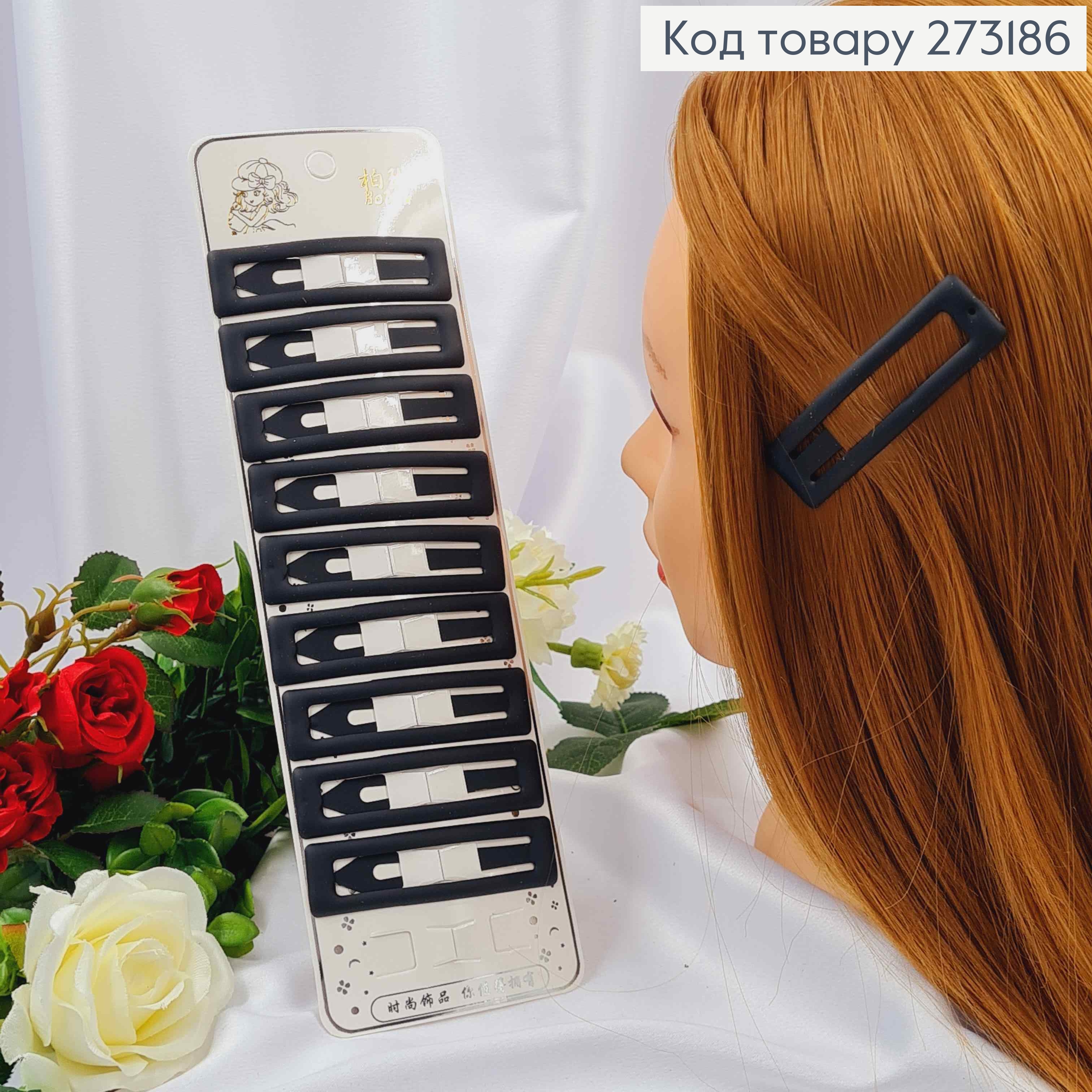 Заколки Тік-так 6,5см ЧОРНА матова, ПРЯМОКУТНА "каучук", 10 шт/уп.