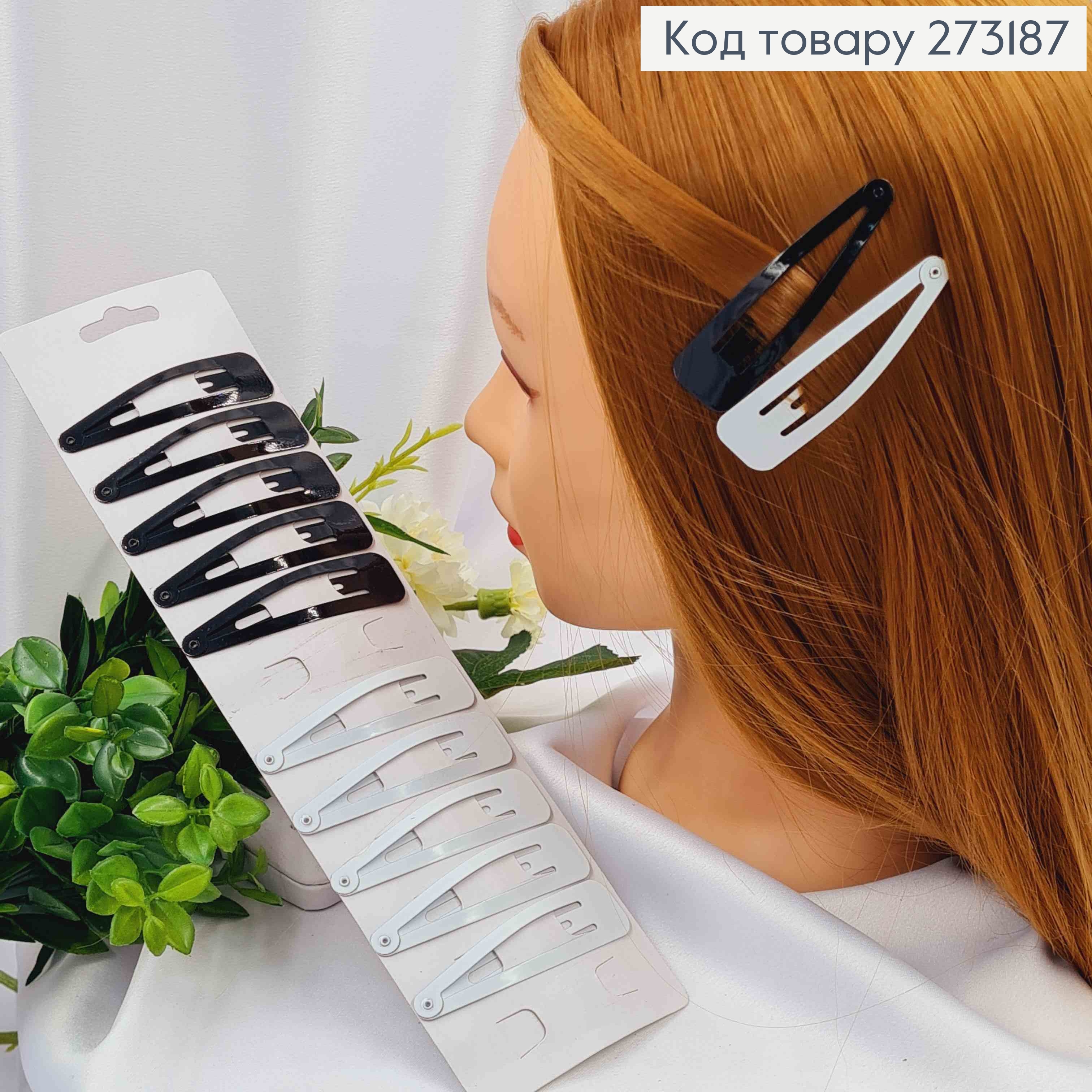 Заколки Тік-так 6,5см чорна/біла , 10 шт/уп.