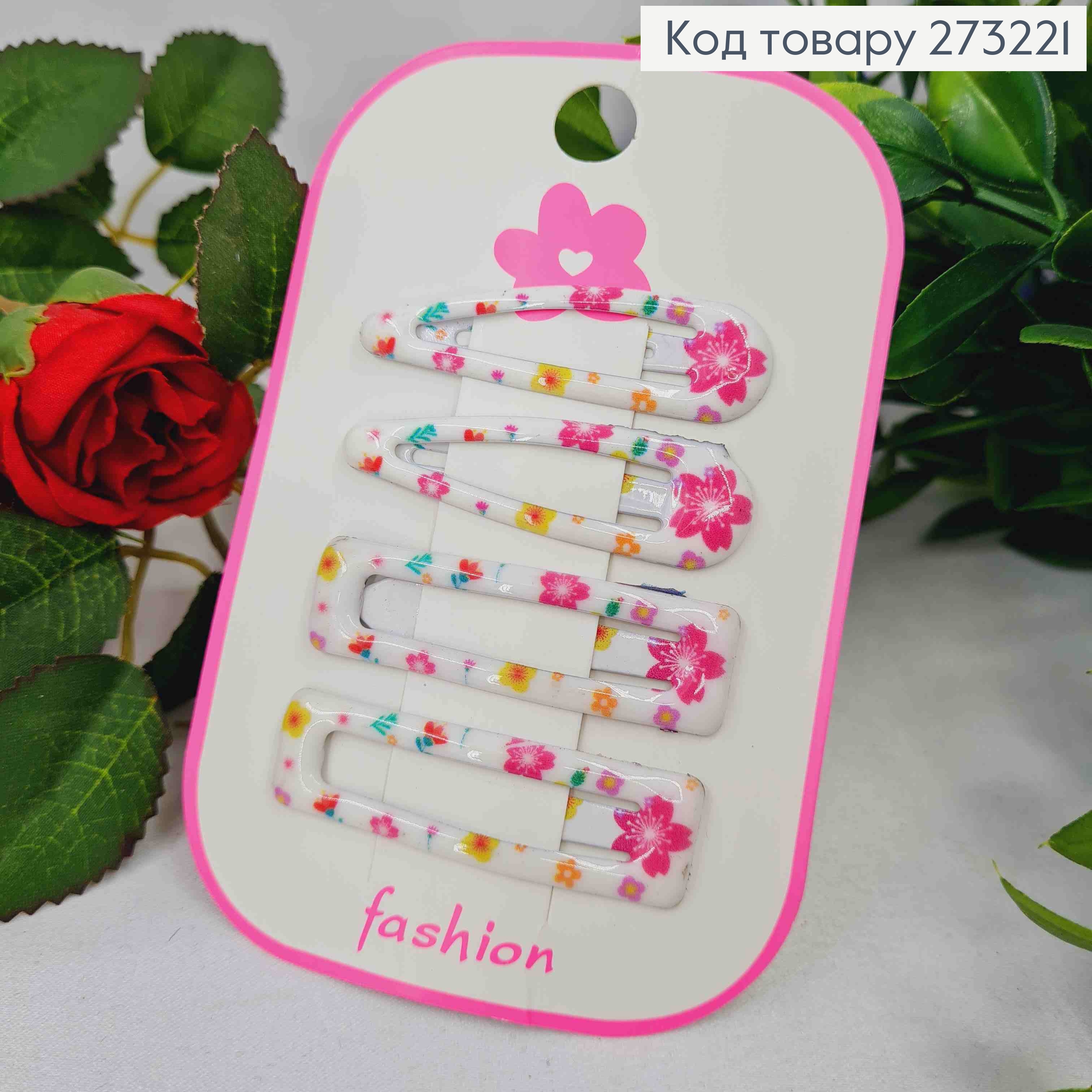 Заколки Тік-Так дитячі БІЛІ з Квіточками, 4шт/уп