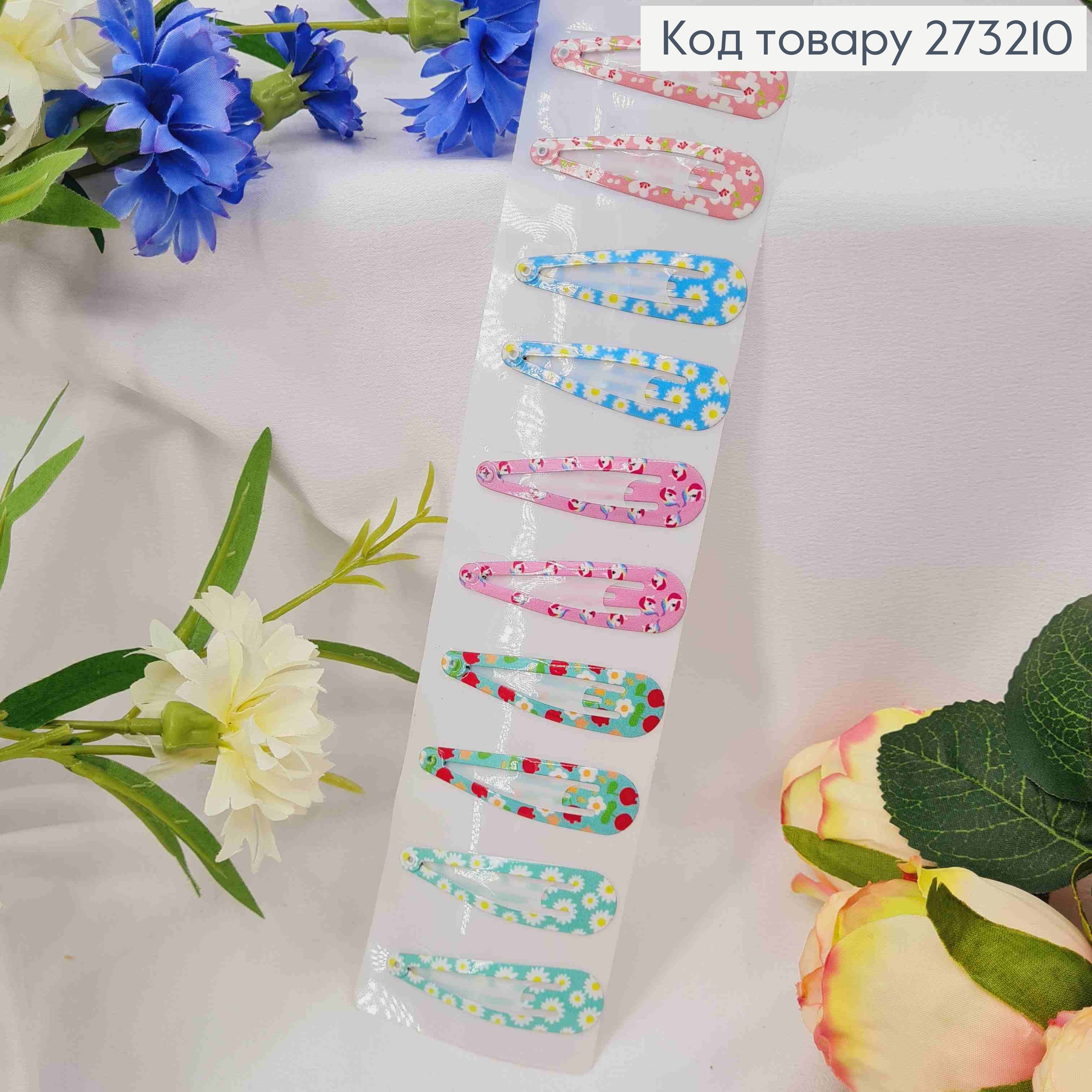 Заколки тік-так дитячі, "Весняні квіти та Єдиноріг", Різнокольорові, 5см, 10шт/уп