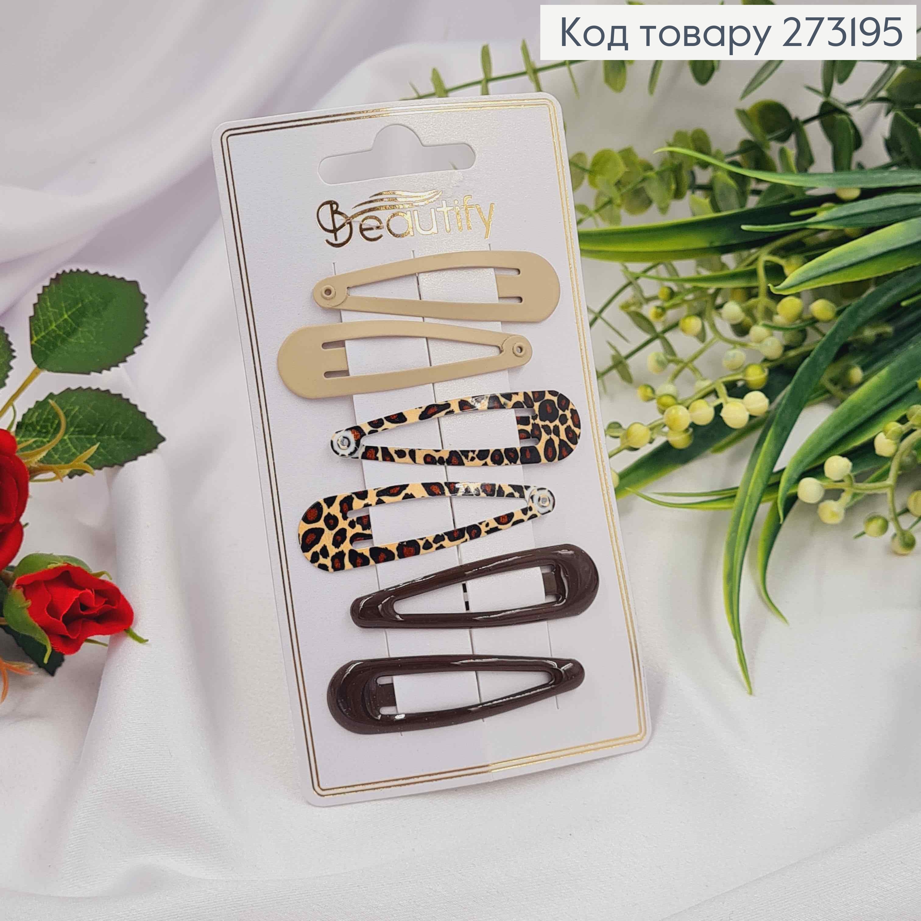 Заколки Тік-Так, Коричневих кольорів, 6шт/уп, 5см, Beautify.