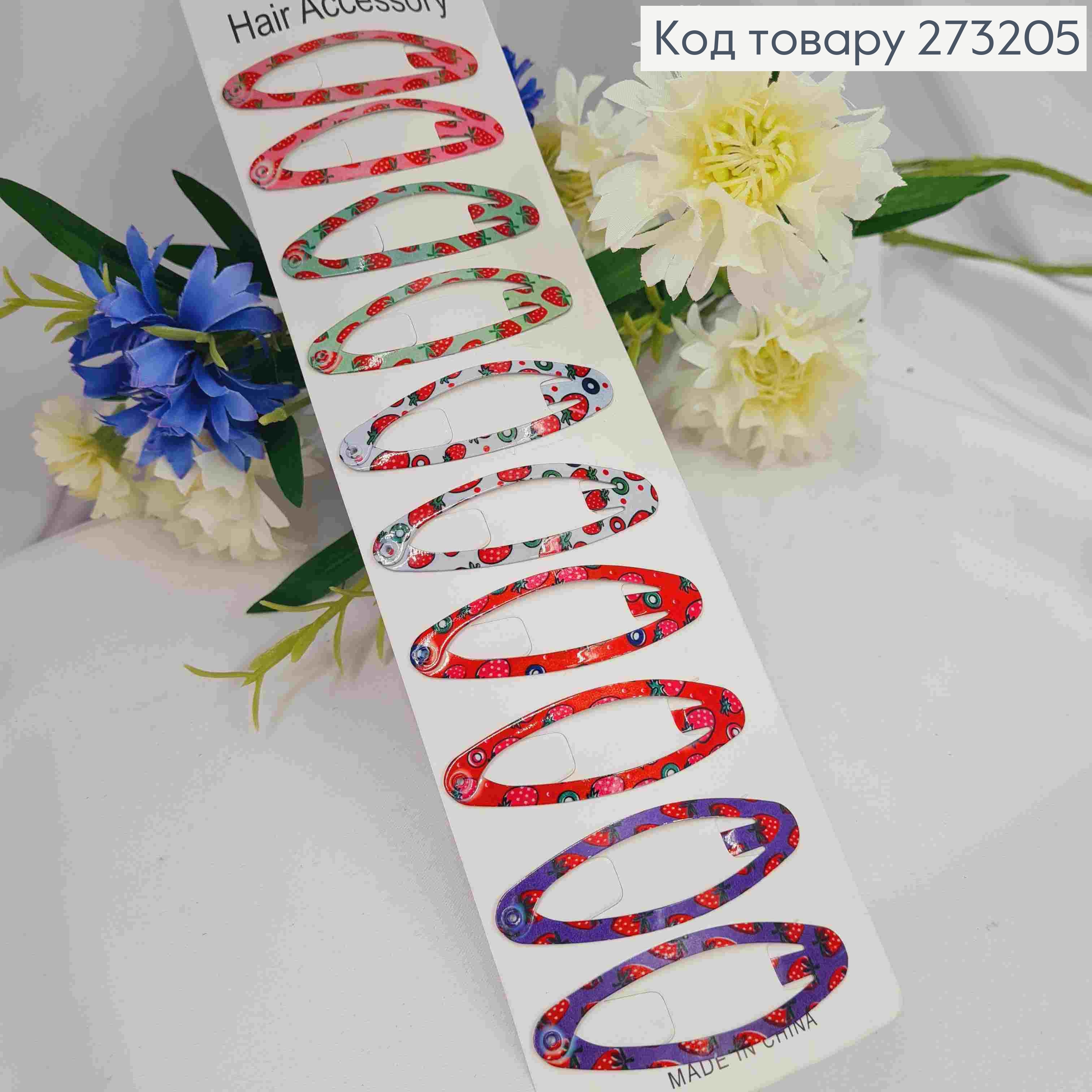 Заколки тік-так Овальні, з Полуничкою, кольорові, 6см, 10шт/уп