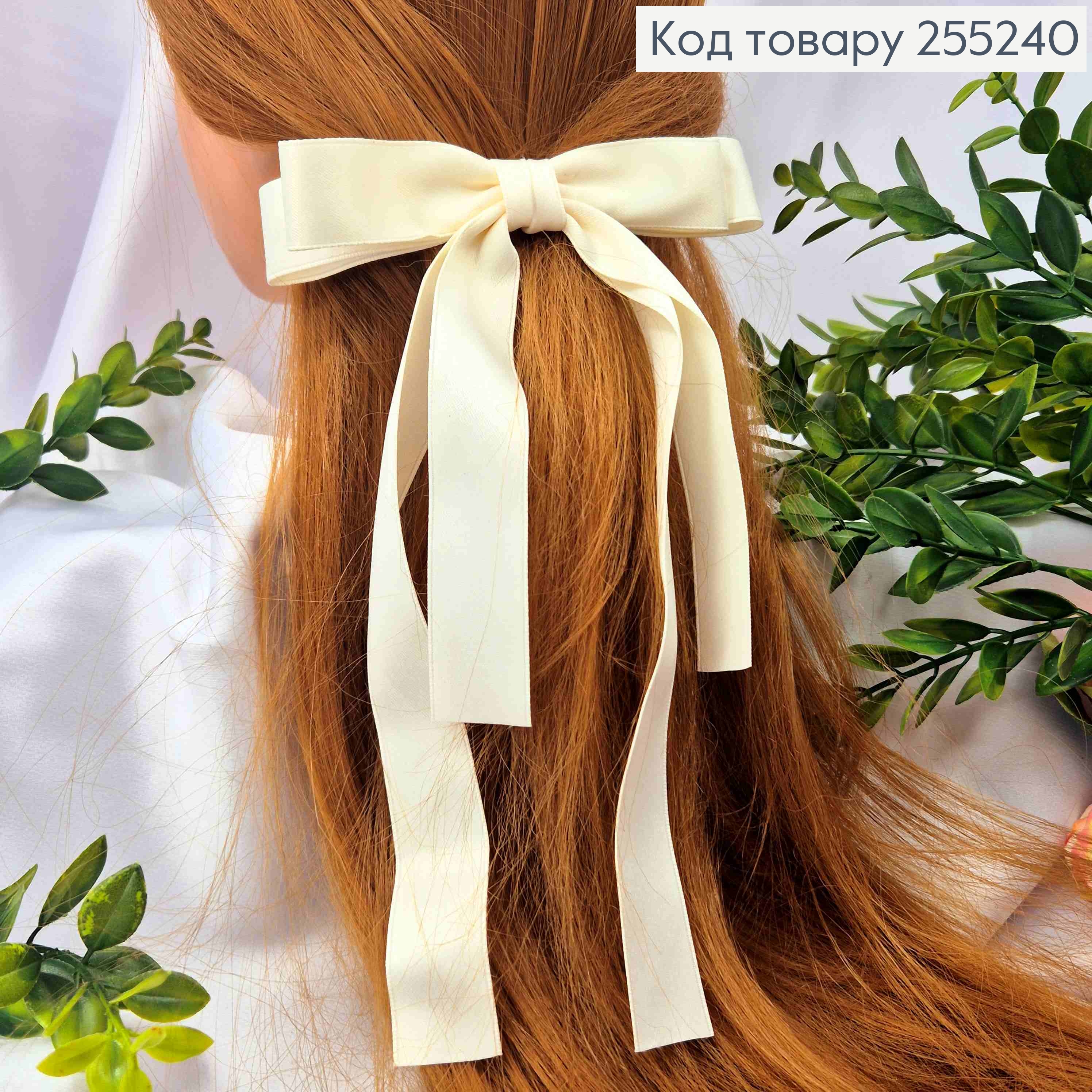 Бант АЙВОРИ, атласный, двойной с длинными хвостами, на заколке автоматик, размер 15*23см.