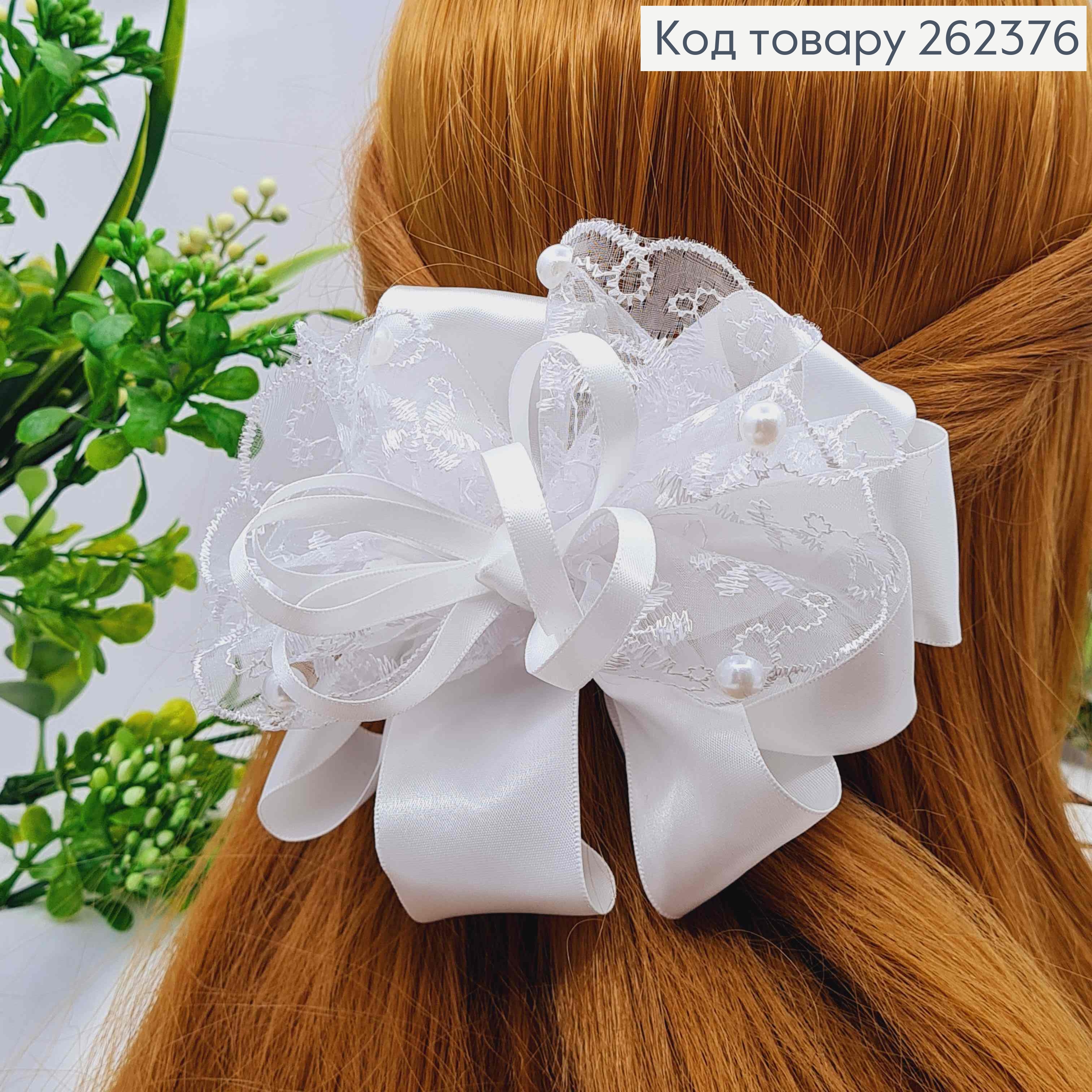 Бант БЕЛОГО цвета, на заколке 5,5см, ткань кружево+атлас, размер 15*25см, Украина. 276158 фото