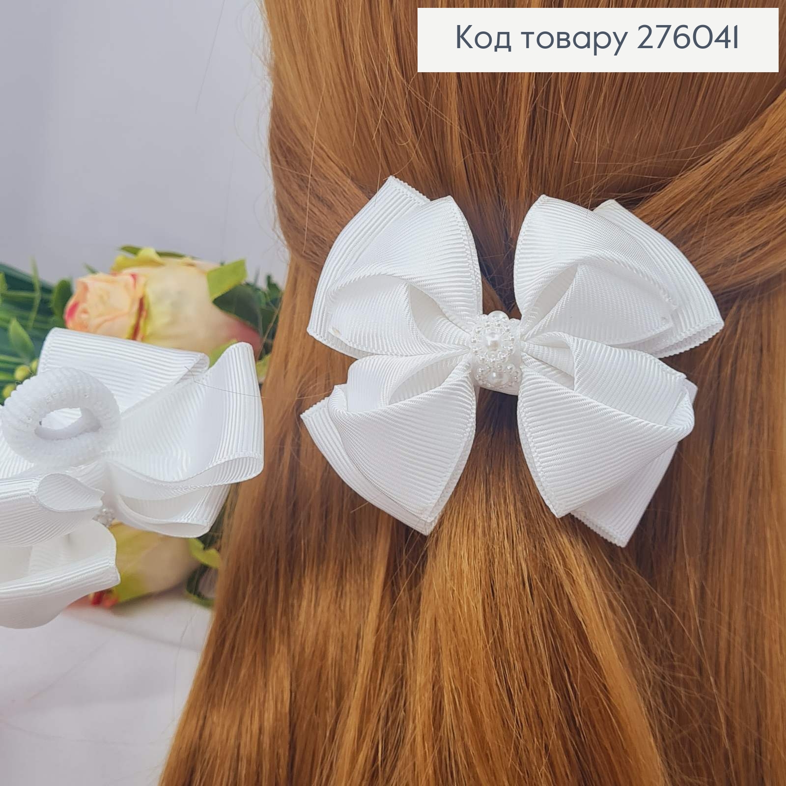 Бант БЕЛЫЙ репс с бусинками на резинке, размер 9*7см, ручная работа, Украина.